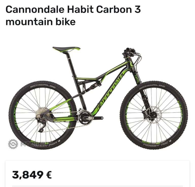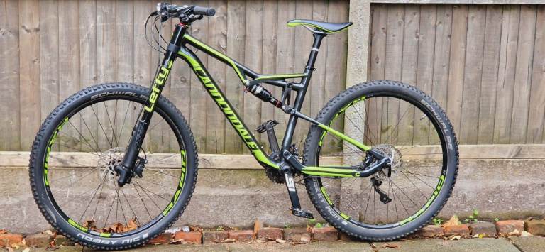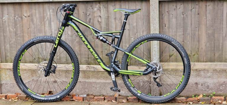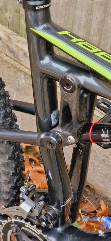 This is a high-quality Cannondale Habit Lefty mountain bike made with carbon fibre material. It has a 27.5 inch wheel size and a 20 speed number of speeds. The bike type is a full suspension (front & rear) and features disc brake - hydraulic brake type. The frame size is medium and the model year is 2016.