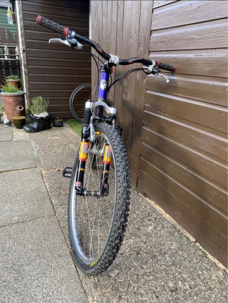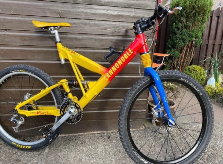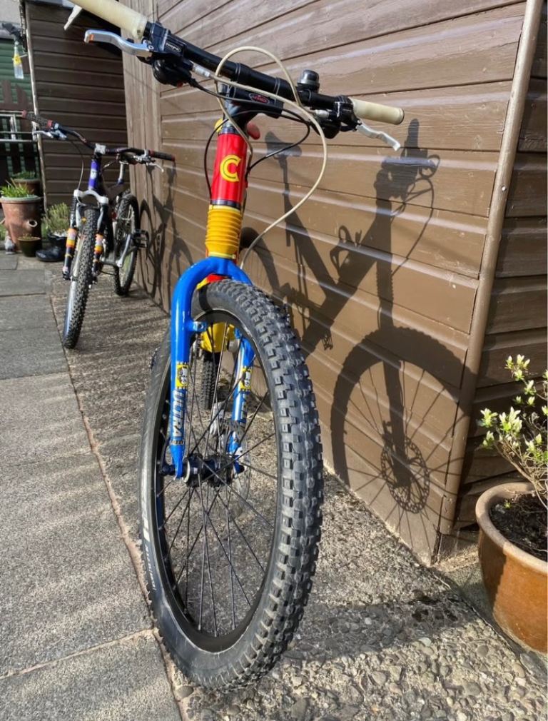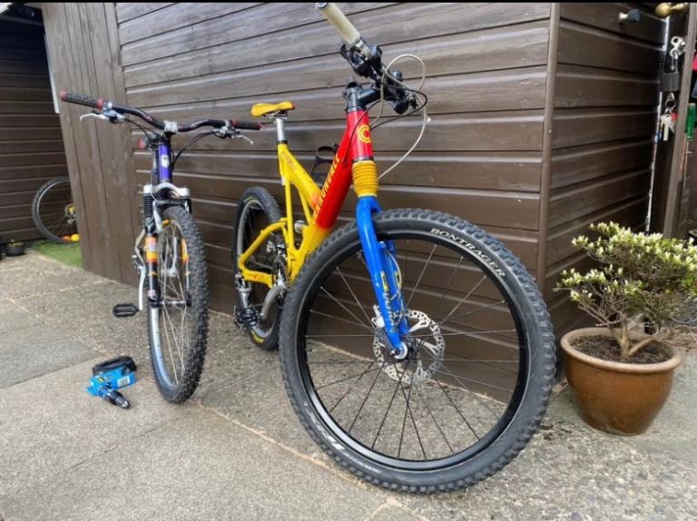 Here we have my Cannondale super v800 Full Suspension (Volvo Colors) from 1998, few things to note, comes with the original seat 2 tone colour don’t see many of these! Hope grips and hope brakes. XL frame on 26inch tyres. Only thing needing done is front brake just a service and the bike is good to go…