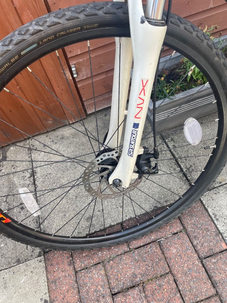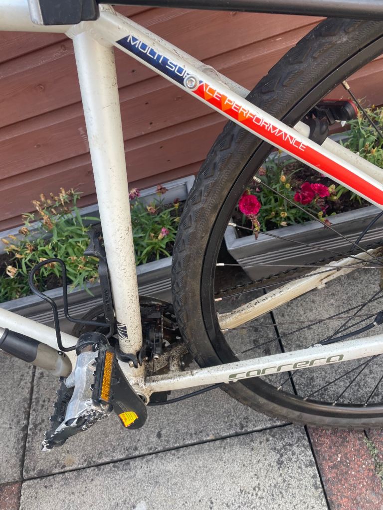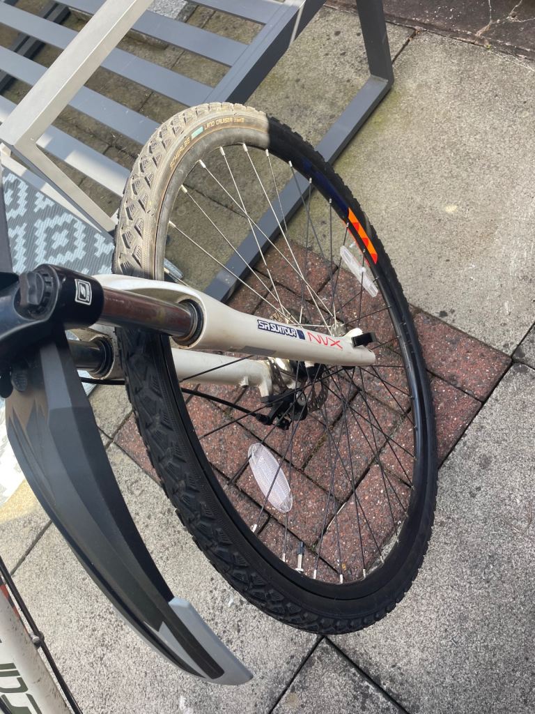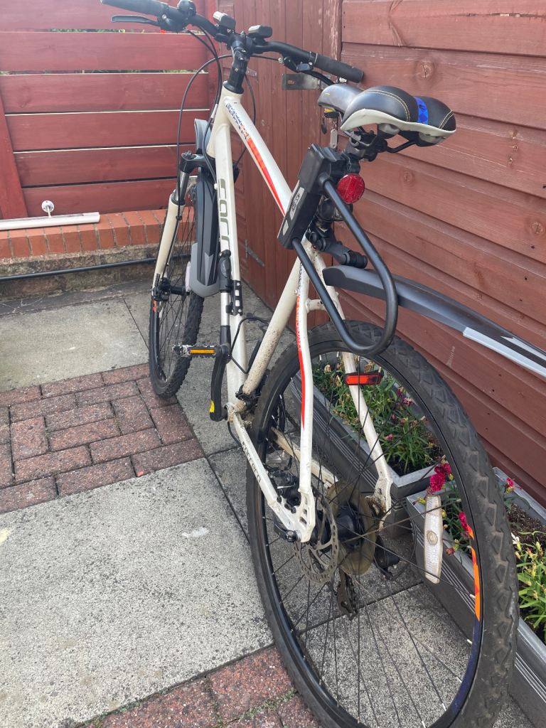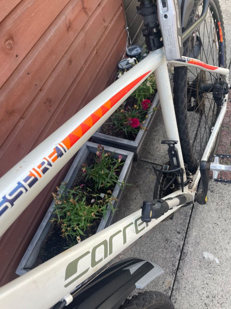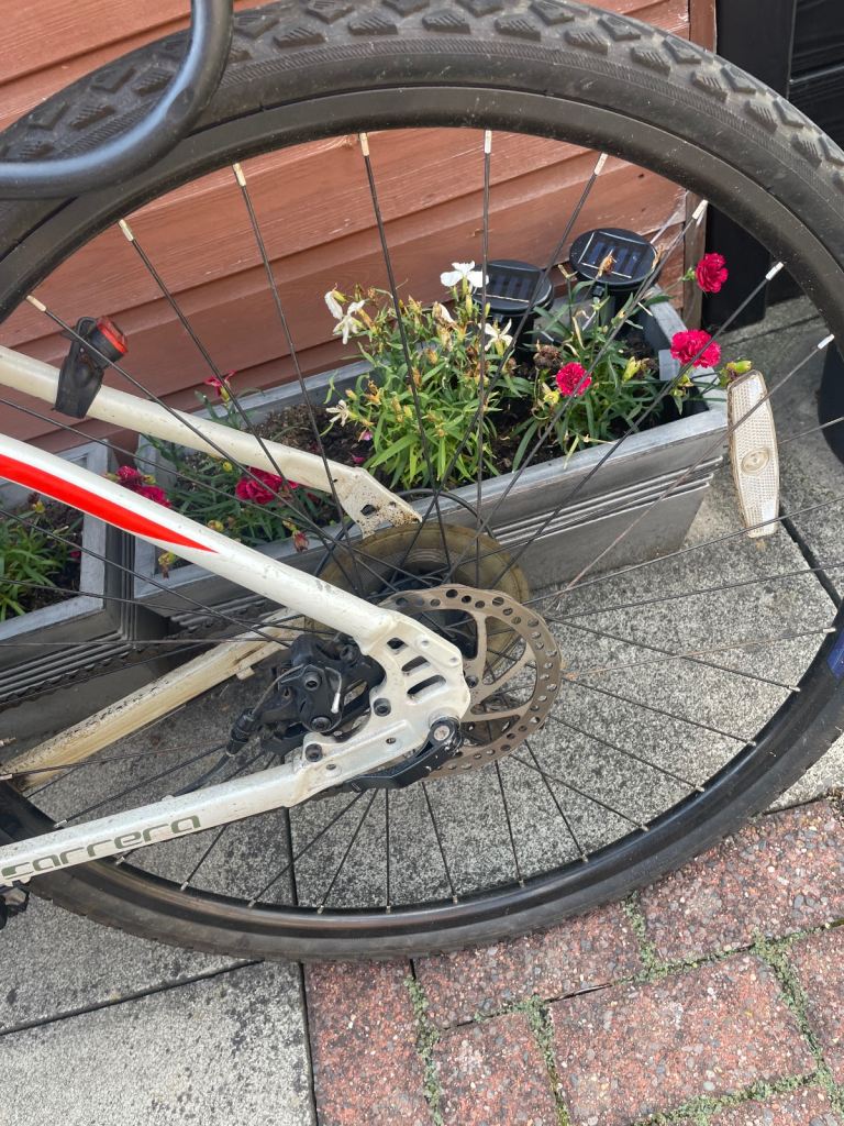 White Carrera crossfire11 24 shimano gears and disc brakes comes with front and rear lights and wheel reflectors pump sturdy lock with keys and also mud guards. Fully working and new tyres fitted about 20 miles ago new bike forces sale also comes with owners hand book size L sensible offers will be considered