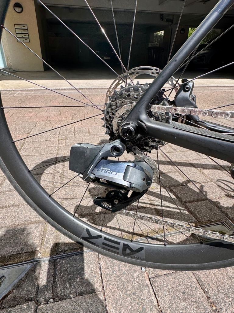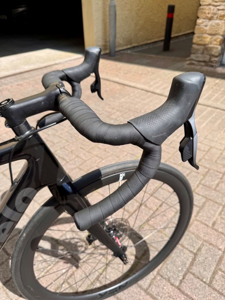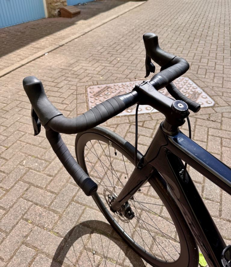 Wireless SRAM Force AXS 12 Speed group set and rolling on a set of OneAER Carbon wheels/DT Swiss 370 XDR hubs. Cassette 10/28T. Front chainrings 48/35T. New rear derailleur and chain about 750 miles ago. New S-Works 28mm road tyres approx. 250 miles old (incl. 1 tpu inner tube). New bar tape never used. Battery charger included. x2 Bontrager water bottle cages. Pedals not included (or can be at an additional cost - Shimano Ultegra carbon pedals).