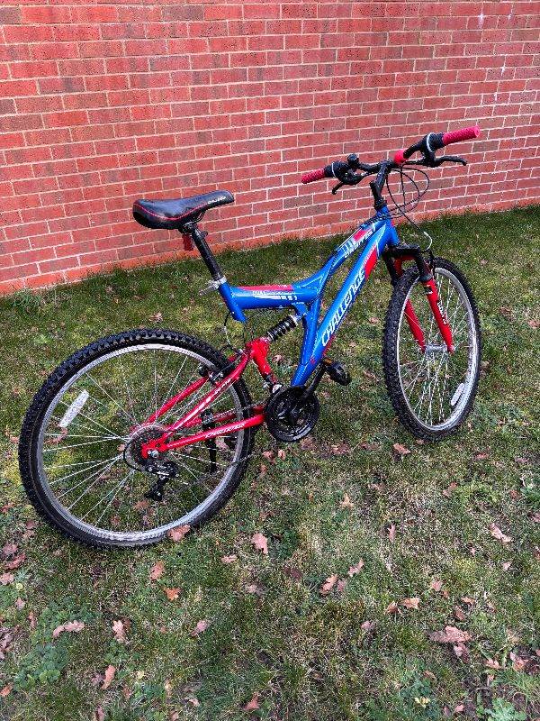 Challenge Orbit 26" dual suspension mountain bike, suitable for both men and women and ideal for roads, paths and light trails. This bike is, I believe, Argos catalogue no. 884/8257 selling for £230. Used only a couple of times with working brakes and suspension, rides nicely and has some cosmetic wear as expected from normal use. Cash on collection only from Stanway, Colchester CO3, and the photos in the ad show the actual bike.
