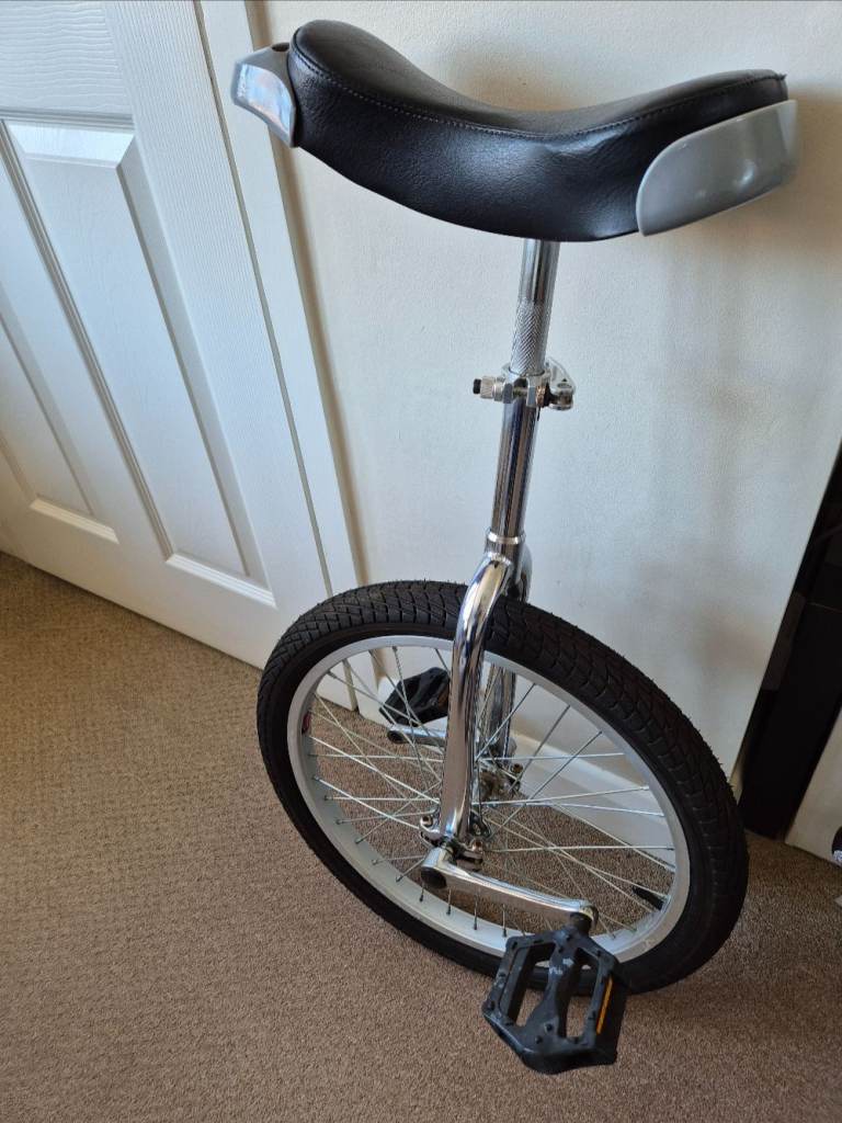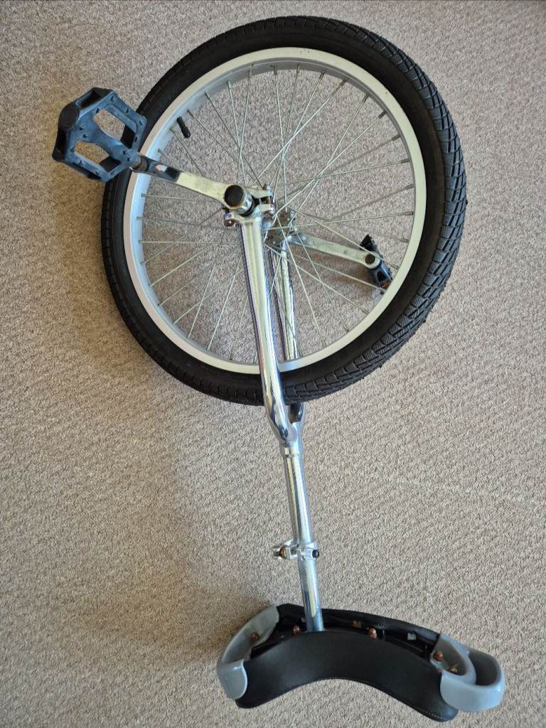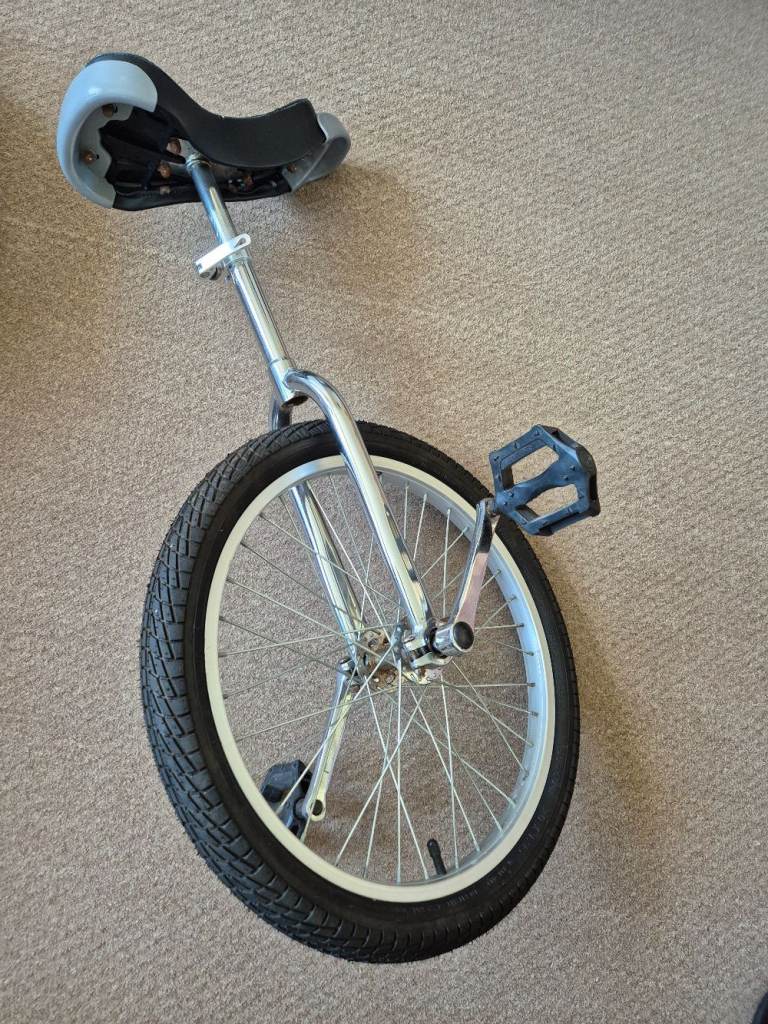Chrome Deluxe Unicycle with a 20" Wheel in good but used condition.
