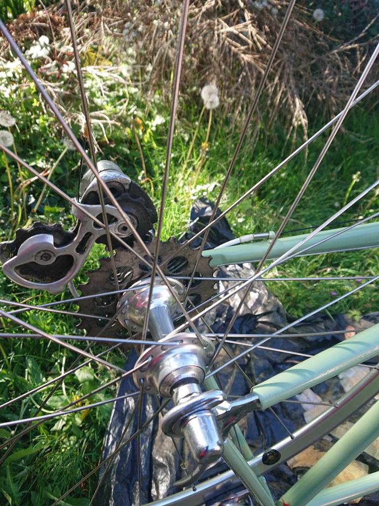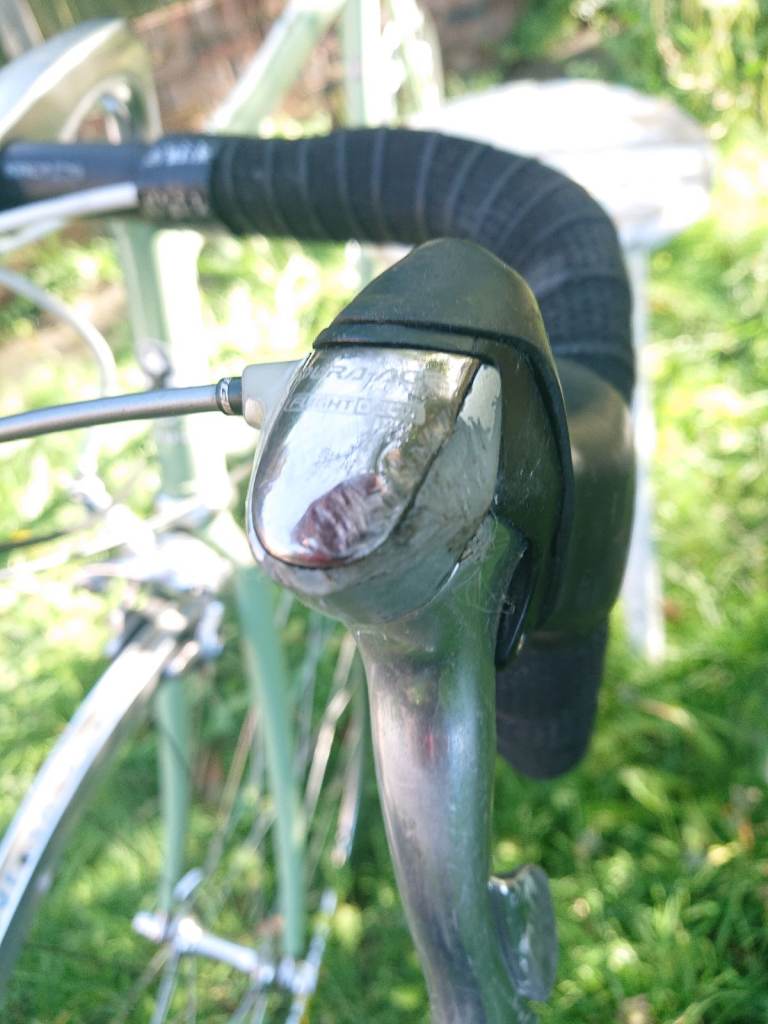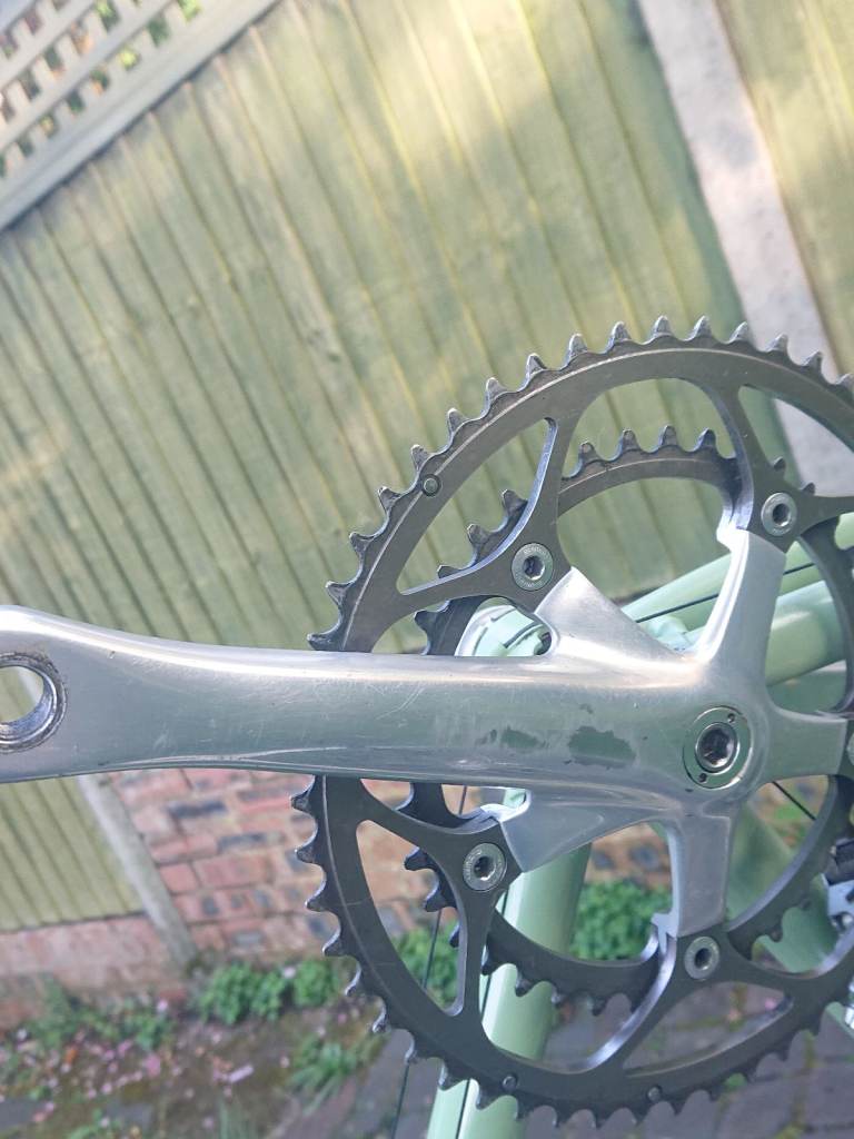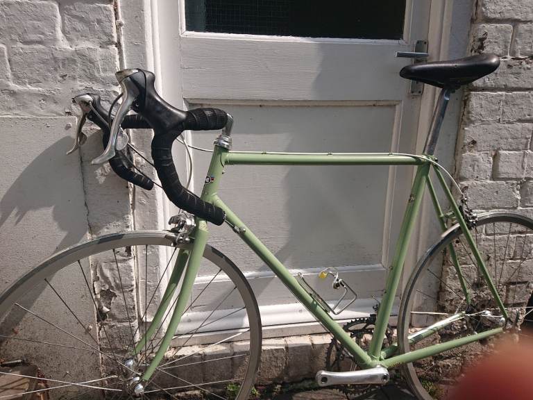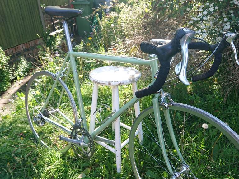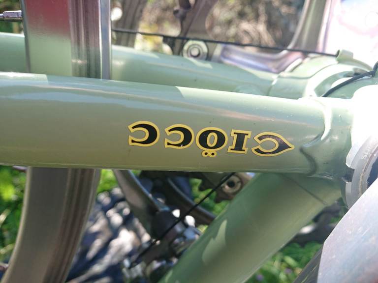 Restored Ciocc 'Designer' road bike from 1984 (I think.) Much love has been put into restoring this bike. I acquired the frame which had loads of surface rust along with a Campagnolo headset and Dura-Ace bottom bracket that were strangely perfect. Apart from the drop-outs, which were saved, the chrome and paintwork were too far gone so I had it shot-blasted and powder-coated by a local company that do work for the Motor Museum. I chose powder-coating as they achieve a great finish and it is harder-wearing (and cheaper) than pearlescent. The bike was then built up and includes the following;