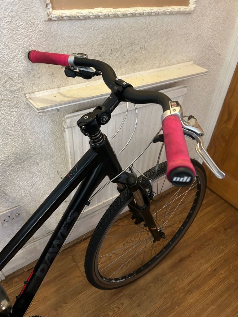 Daws Sonoram ladies bike in excellent condition (literally new) . Specs: frame size: 16”, wheel size: 700c (28”) and speed: 24. Its benefits from ultra lightweight aluminium frame. Front suspension, rim brakes system and Shimano group sets. It’s one of the best make. If you are in interest get in touch please.