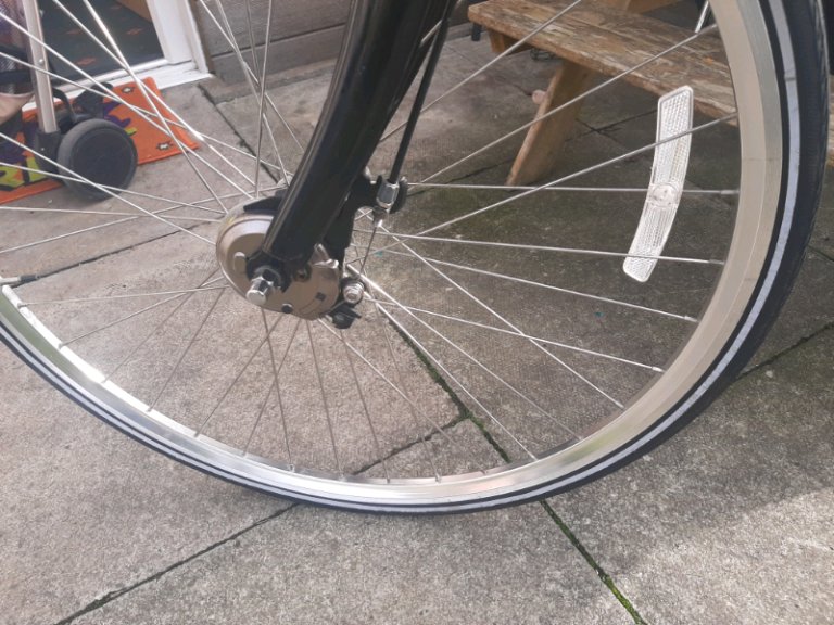 Polished 700c wheels with 7speed Nexus internal gearing. Shimano intern hub brakes