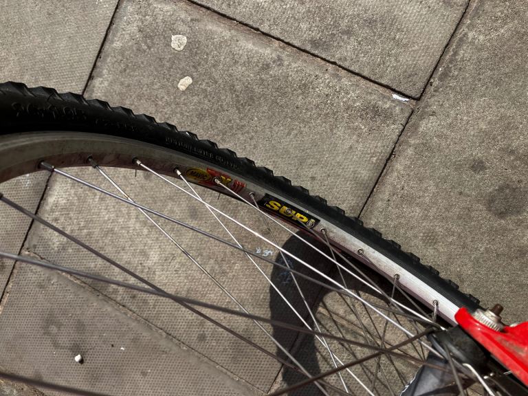 Will include two extra sets of new tyres - continental mountain kings and sport contacts. This means you have knobbly for off road and slicker ones for about the city.