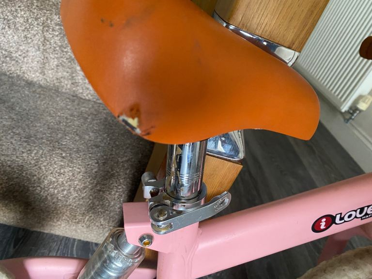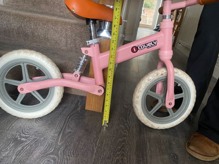 Great pink balance bike, great bike by ILovely, good condition just a small rip as shown in photos. Top of seat is 18” as shown in photos . £20 ono collect only from Southwell NG25.