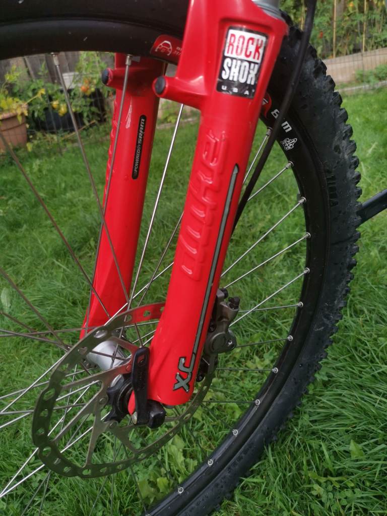 Wheels: 26" WTB SpeedDisc rims, Shimano hubs with knobby tires