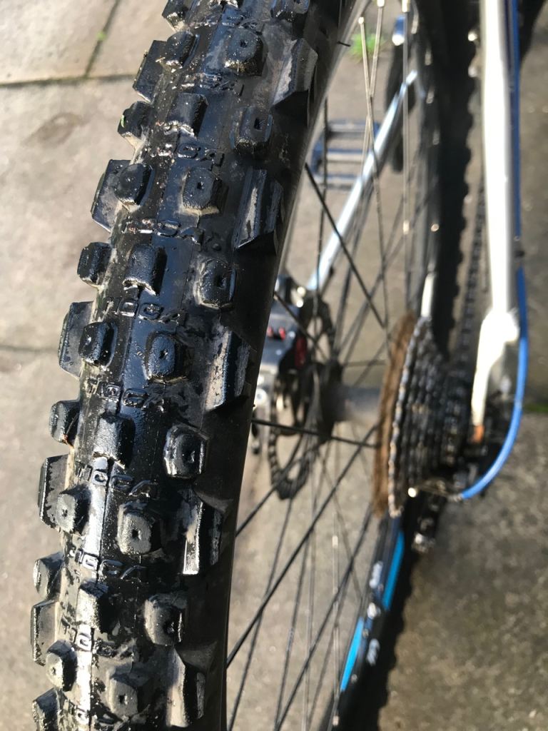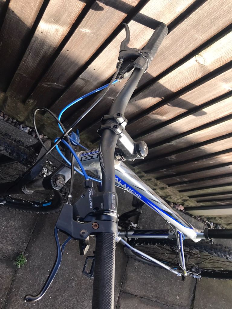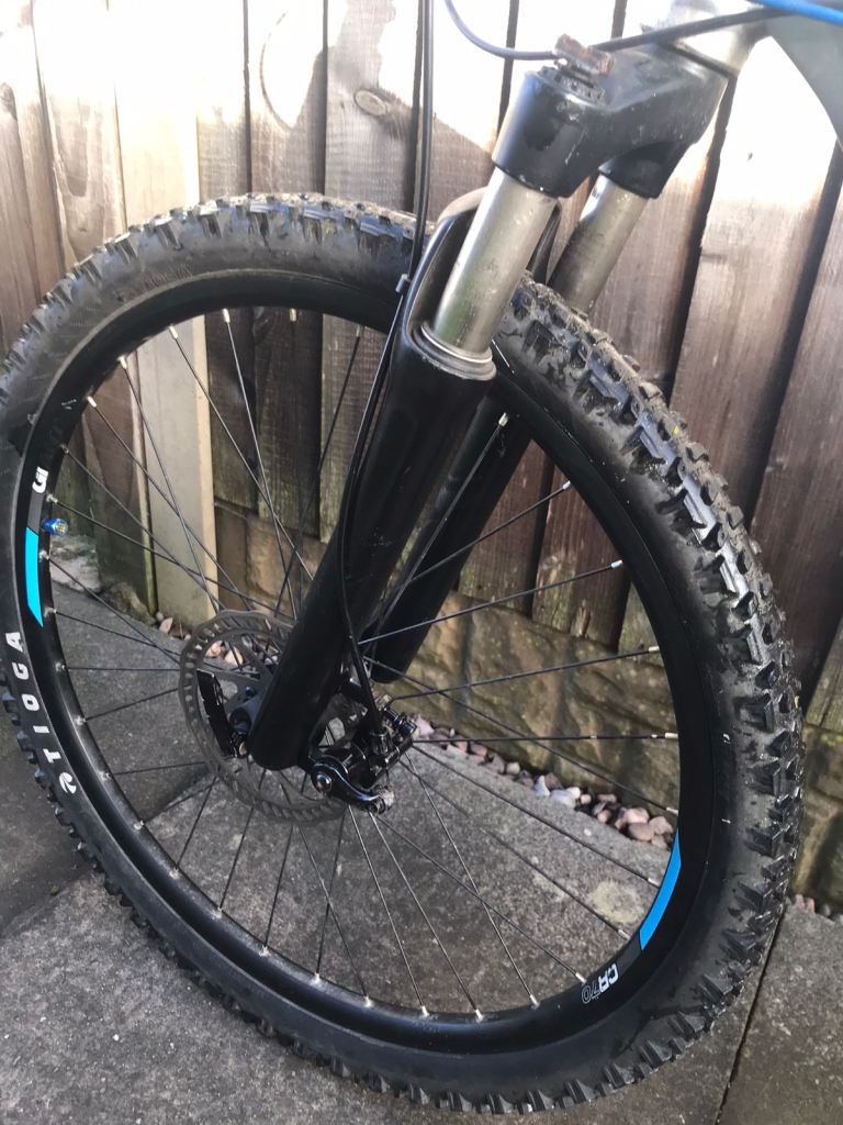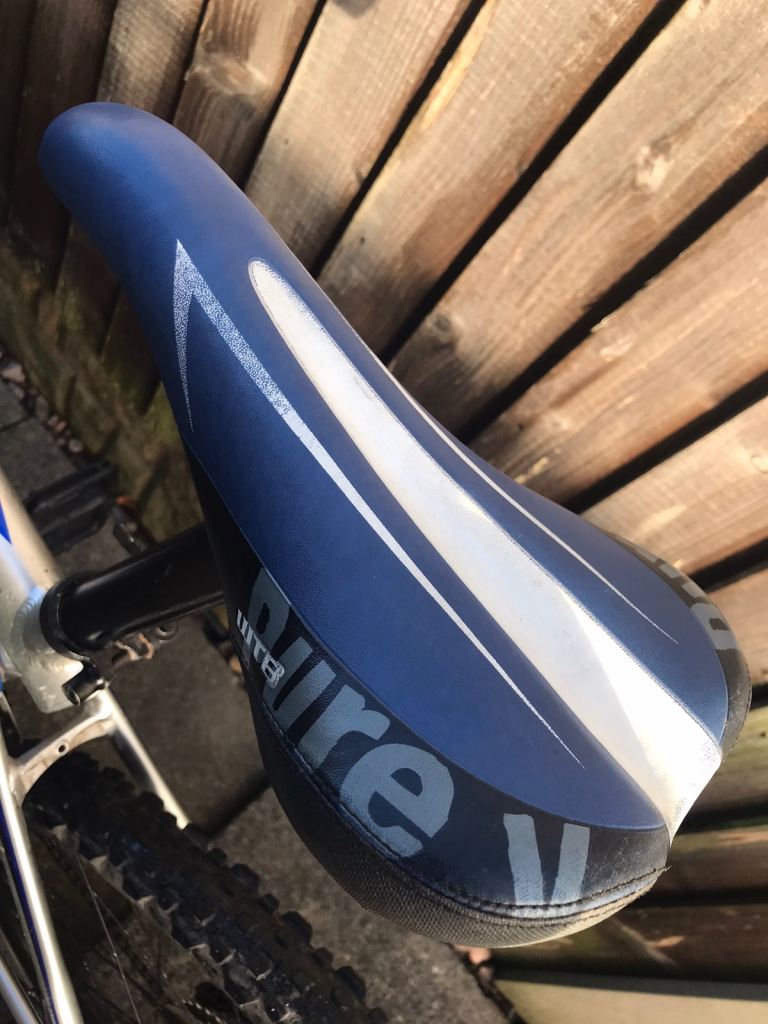 18 frame. The bike rides perfect in every gear with both disc brakes fully working. There are no deep scratches on the frame or seat. The matching tyres are in excellent condition with no buckles. Rides smooth and quiet