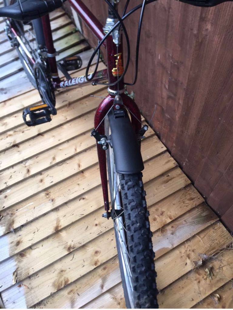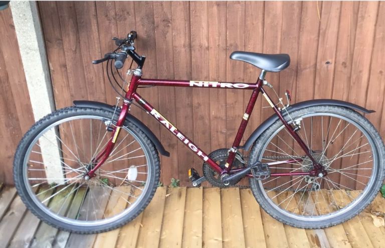 Men’s Raleigh Nitro Mtb mountain bike. In very good condition. Excellent colour dark maroon. Handlebars and seat post can be fully adjusted. All working as it should. Includes mudguards worth £30 alone!!!