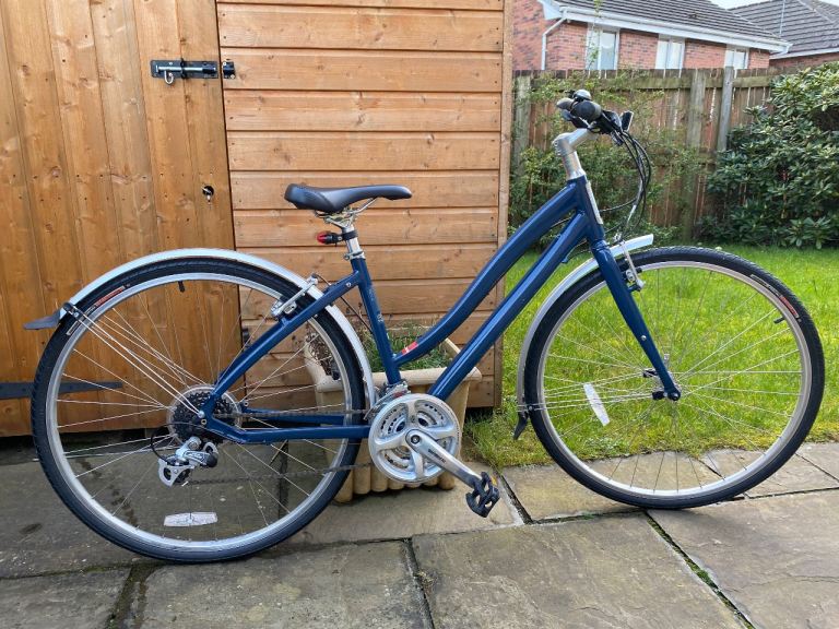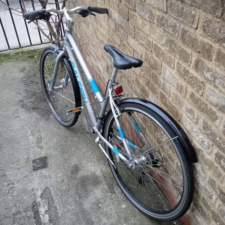 With sturdy yet reasonably light alloy frame, 21 gears, 700x35c tyres, mudguards , kickstand and sockets for rear rack, Raleigh Edale is a very versatile, reliable, comfortable and also fast bike that's great not just for city streets but also countryside and gravel trails. With it's step-through frame, technically it's a women's bike but I don't think that really matters these days; if it fits you and your needs - ride and enjoy! I also have a few rear racks available that I can fit for extra £10.