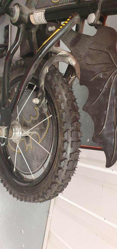 Barely used if you look closely the tyres are still like new with the rubber spikes still there, the rims are also like new, normally on a used bike the paint on the rim is rubbed off by the brake pads when used. Brakes are also like new. Aside from needing a wipe with a damp cloth as its got dusty in storage, the bike is in excellent condition. I will also oil the chain for you and reattach the stabilisers if required