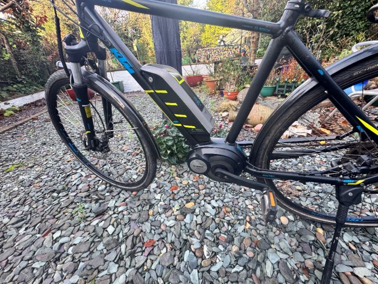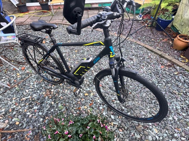 KTM Line Mcina electric bicycle with 9 speed Shimano gears, four power assist modes, Bosch power motor & battery all in very good condition. Shimano hydraulic disc brakes front and rear. Front fork suspension with lock facility. Lights, bell ,and pannier bag with rear rack. Frame size is 51 cm ,wheel size is 28 inches. Collection Only
