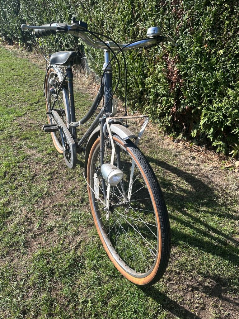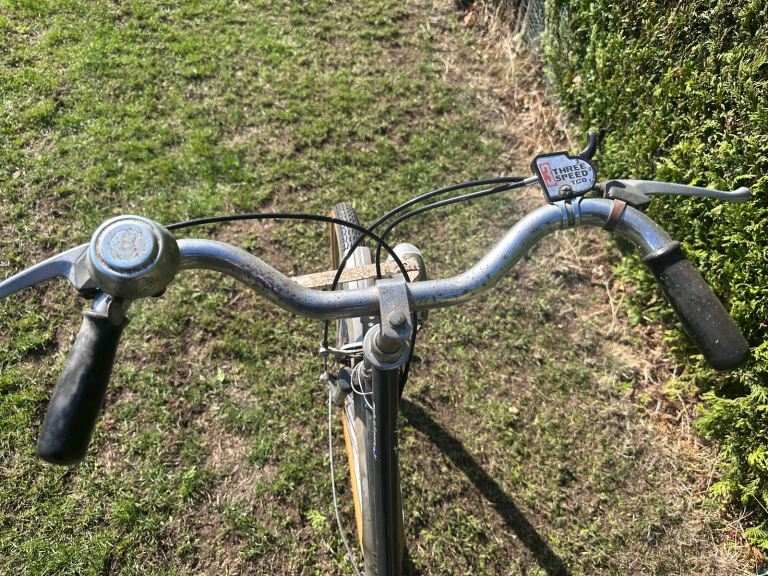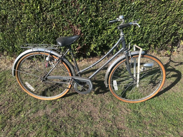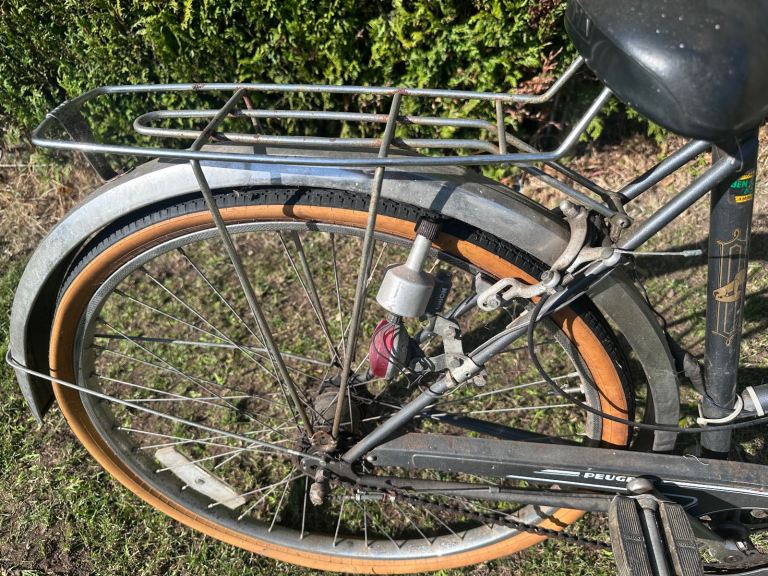 For sale is a ladies bicycle made in France by Peugeot in a traditional style. This is a very well made bike that has stood the test of time and can provide many more years of trusty service. It has holders for baskets / panniers to the front and rear, three speed gears, a chain guard, stand and bell.