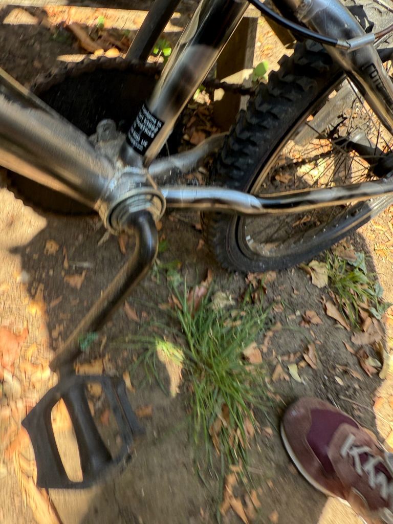 Magna Punish BMX, 11” frame, 22” wheels, V brakes, fixed gear, rear stunt pegs. Approx age 12. Location London E8