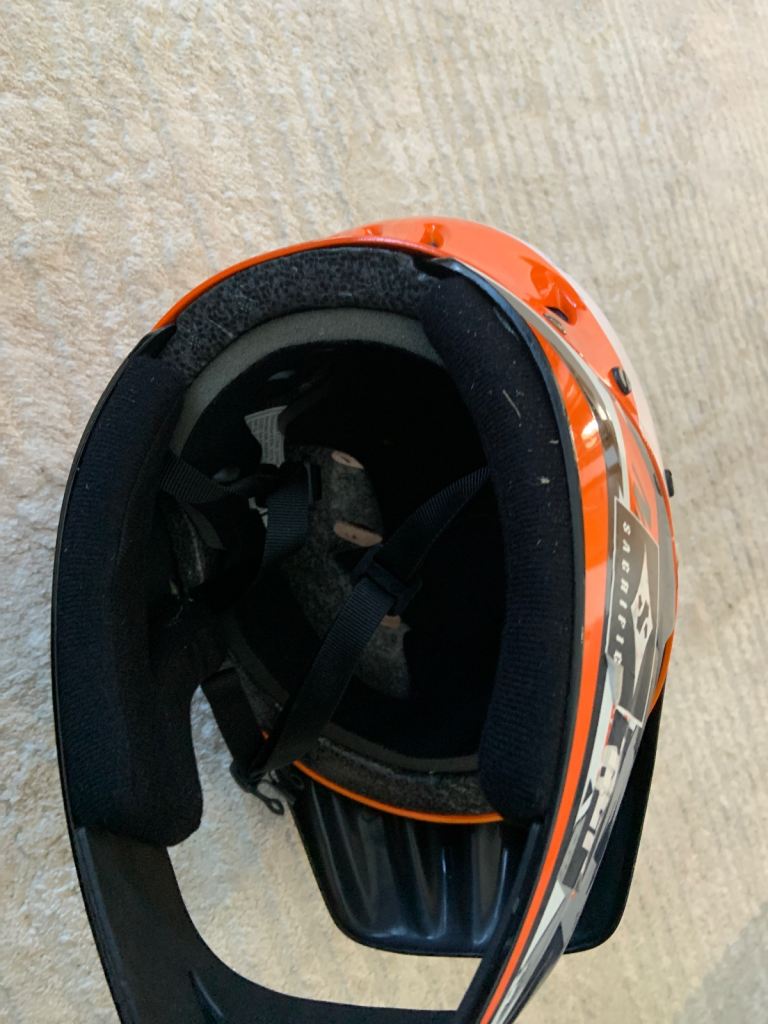 Motorbike of kids helmet or motorcycle helmet immaculate condition only used couple times 8years to 15 years old roughly helmet from Halfords store
