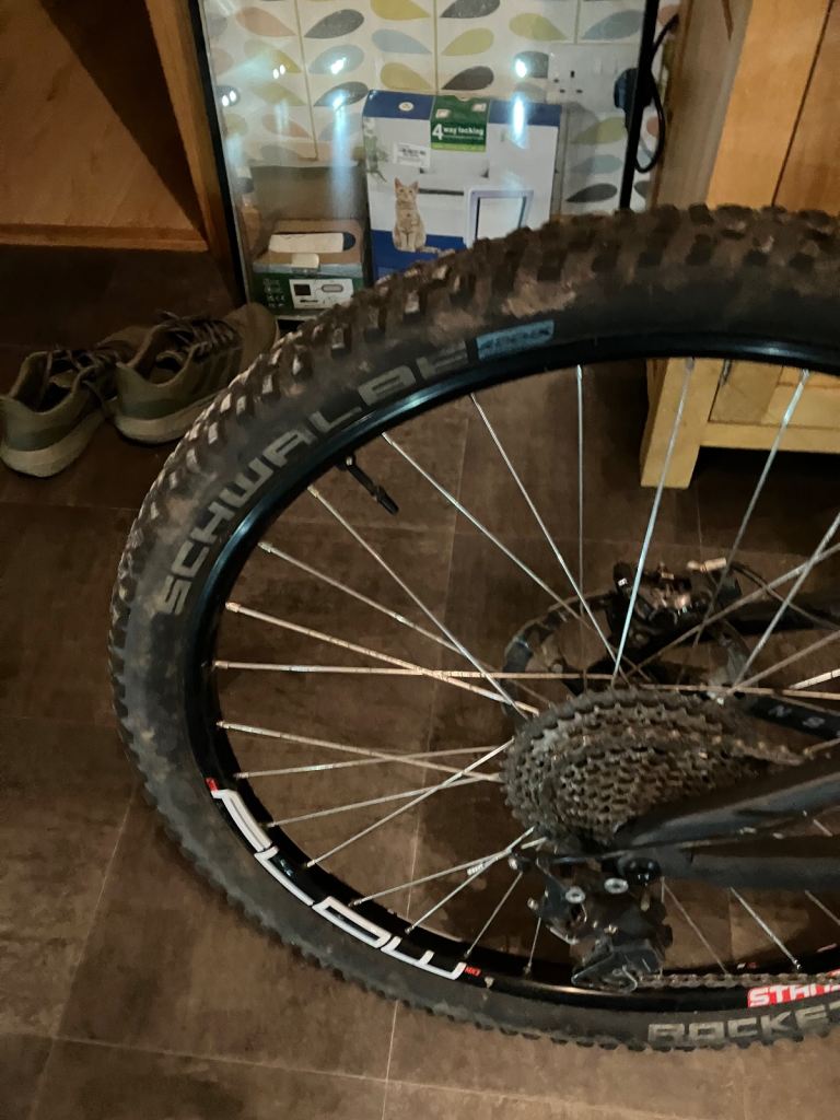 1x11 oval ring, XT Brakes, Stans tubeless rims, Hope Evo hubs, Wheels cost £400 dropper seat post, Charge Spoon seat,good overall condition, very light weight bike, I have owned this bike since new.Medium size