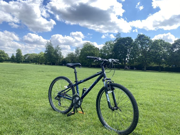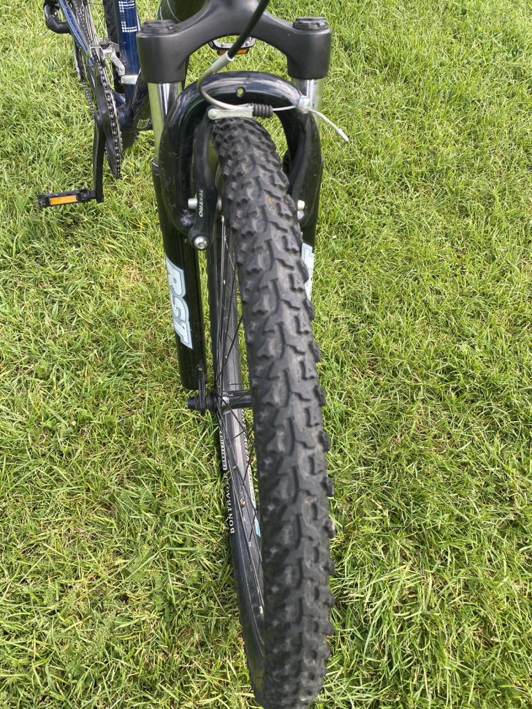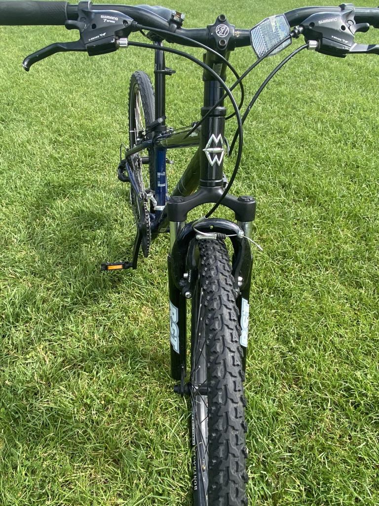 Mountain bike with 7 speed suspension. Gray fisher brands