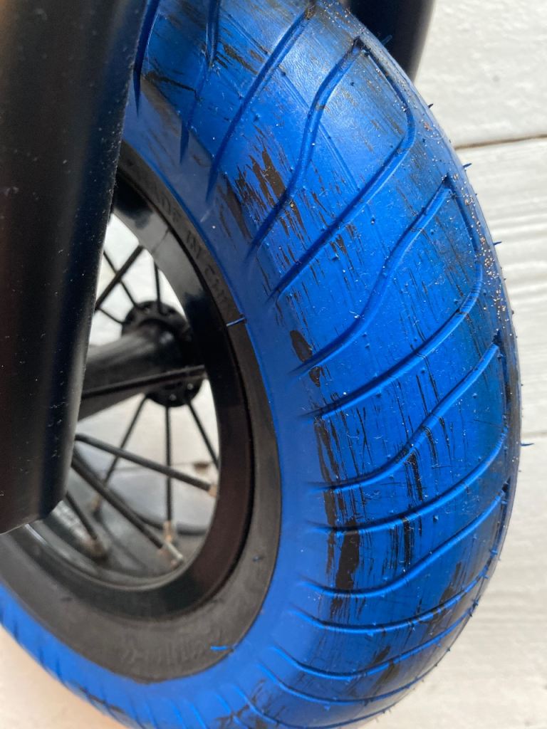 He tried it once in the park. Aside from that never used so as new (a couple of paint slashed on the seat which should come off, pictured).