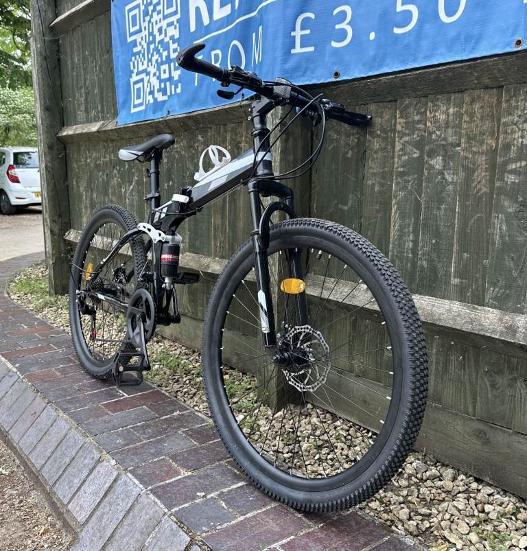 This unique bike has a single top and downtube combined! As well as full suspension to smooth out the bumps in the Oxford roads.