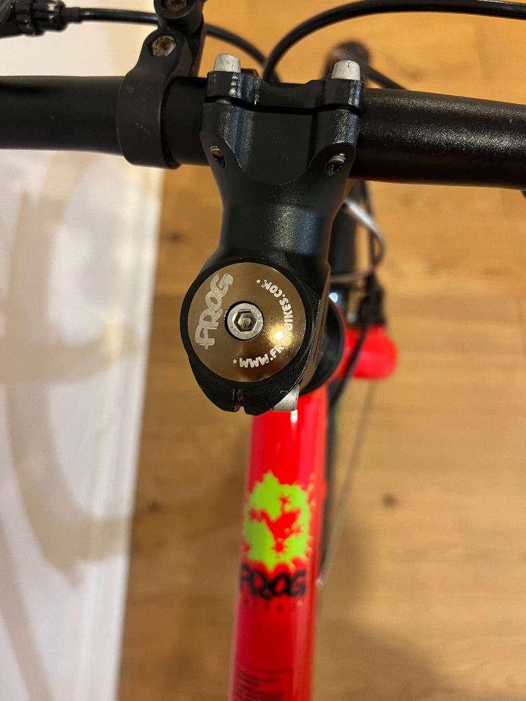 The Frog 69 kids’ bike is equipped with age-specific components, including a quick-release saddle for the perfect riding position and FrogFit Technology® youth-specific 8-speed gear shifters with short lever travel and ultraslick cabling making changing gear and undulating rides a breeze. The bike also comes with Tektro brakes with small, easy-to-reach brake levers, which means better control and improved confidence for young riders. And, our patented Frog cranks, for more effortless pedalling, which reduces the distance between the pedals increasing efficiency and comfort for children.