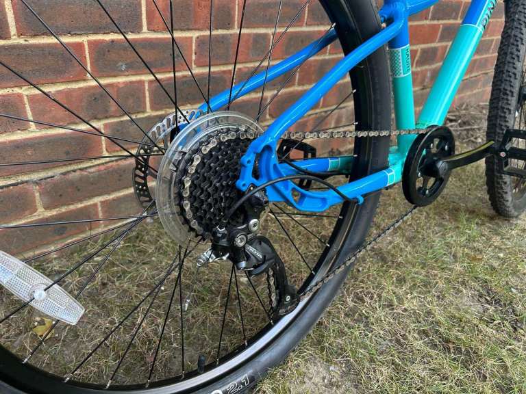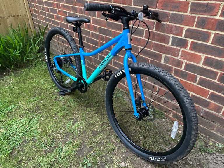 Junior Bike - Pinnacle Kauri 26 Inch, in great condition, light blue. More details: age range: 9–14 years, bike weight: 11.6kg, Frame details: 6061-T6 heat-treated aluminium alloy, Fork: steel, guard eyelets, 1 1/8 inch steerer, Gear details: Shimano Altus M2000 9 Speed, Brakes: Clarks Clout hydraulic disc, Wheel diameter: 26", Tyres: WTB Nano 26x2.1, all docs, ID frame card available, goes with blue junior helmet.
