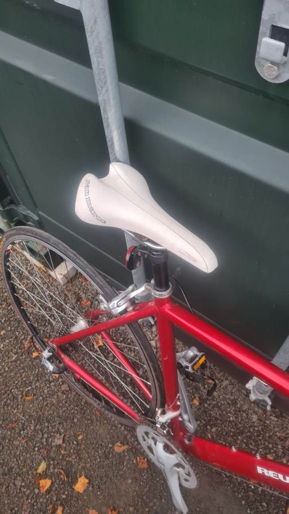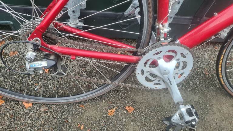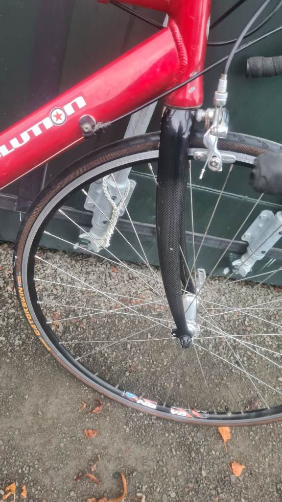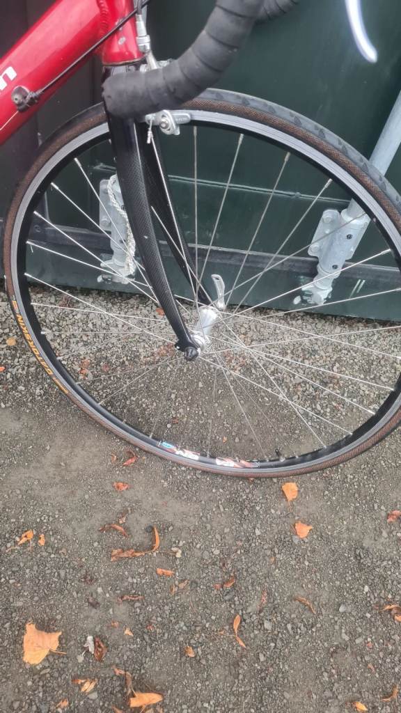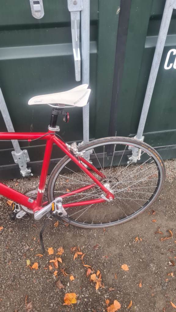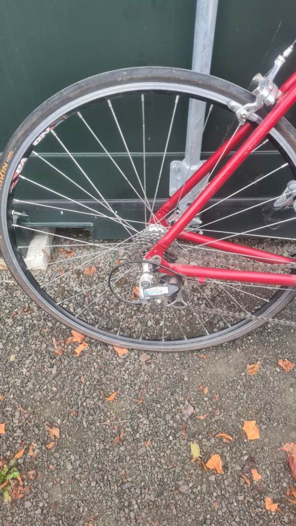 I am selling a road bike, size 50 cm. The bike has Shimano components, but there is no air in the rear wheel. The price is 80 pounds.