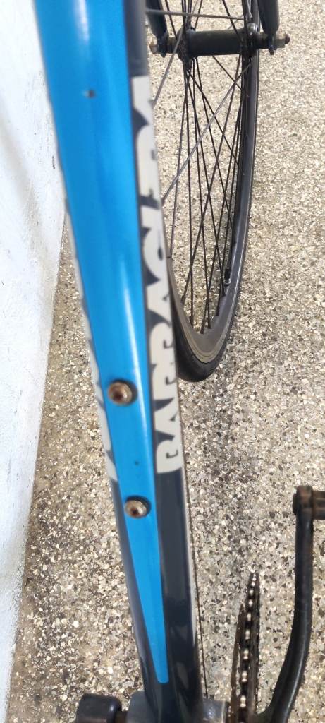Selling the old bike, frame size (centre of crank to seat tube top) 58 Cms. brand Barracuda Model Coruvs in Blue Grey Colour fit for height from 5ft.6inches up to 6ft. and above with seat adjustments.