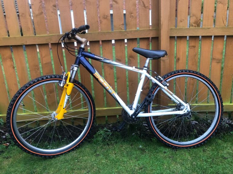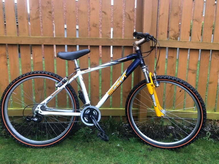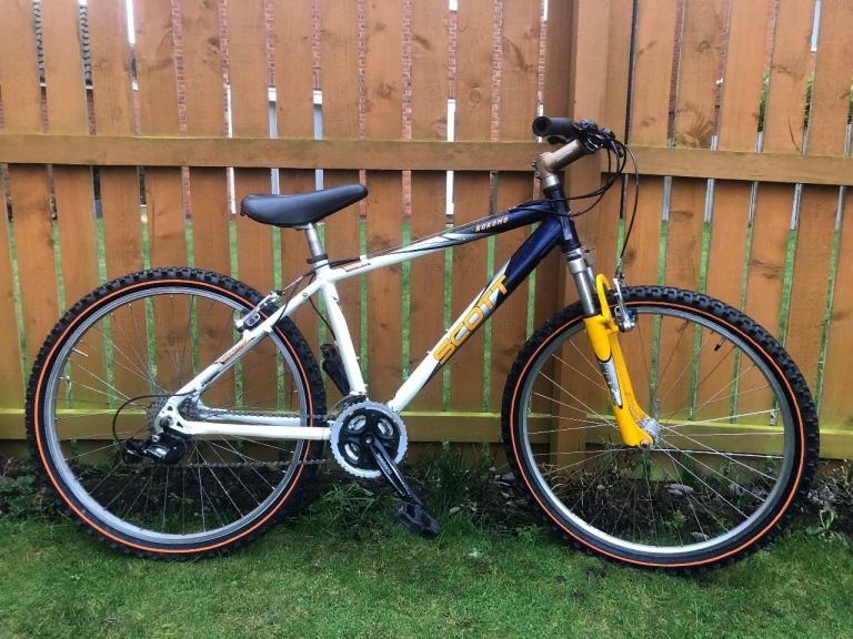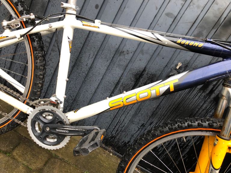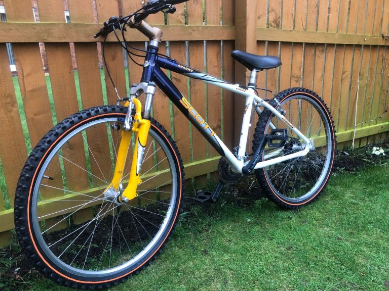 Lovely example of a Scott Kokomo, 26” wheels,16-17” frame medium to large frame , kenda 26” all terrain tyres, rst front suspension , 8x3 gears 24 speed. Shimano Alivio derauilers. Breaks and gears work as they should. Quick release wheels, would benefit from gel seat cover, no rips or tears on the seat