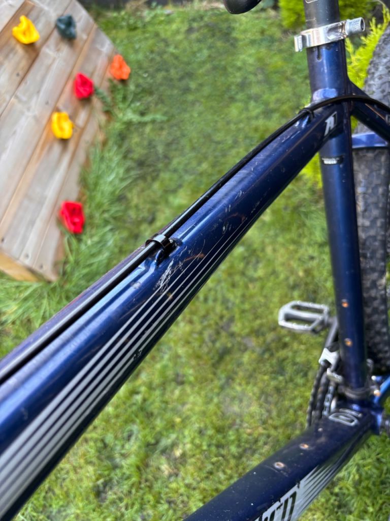 The bike is in overall good condition for its age, its finished in a nice dark blue which does have some paint chips/ scratches due to usage.