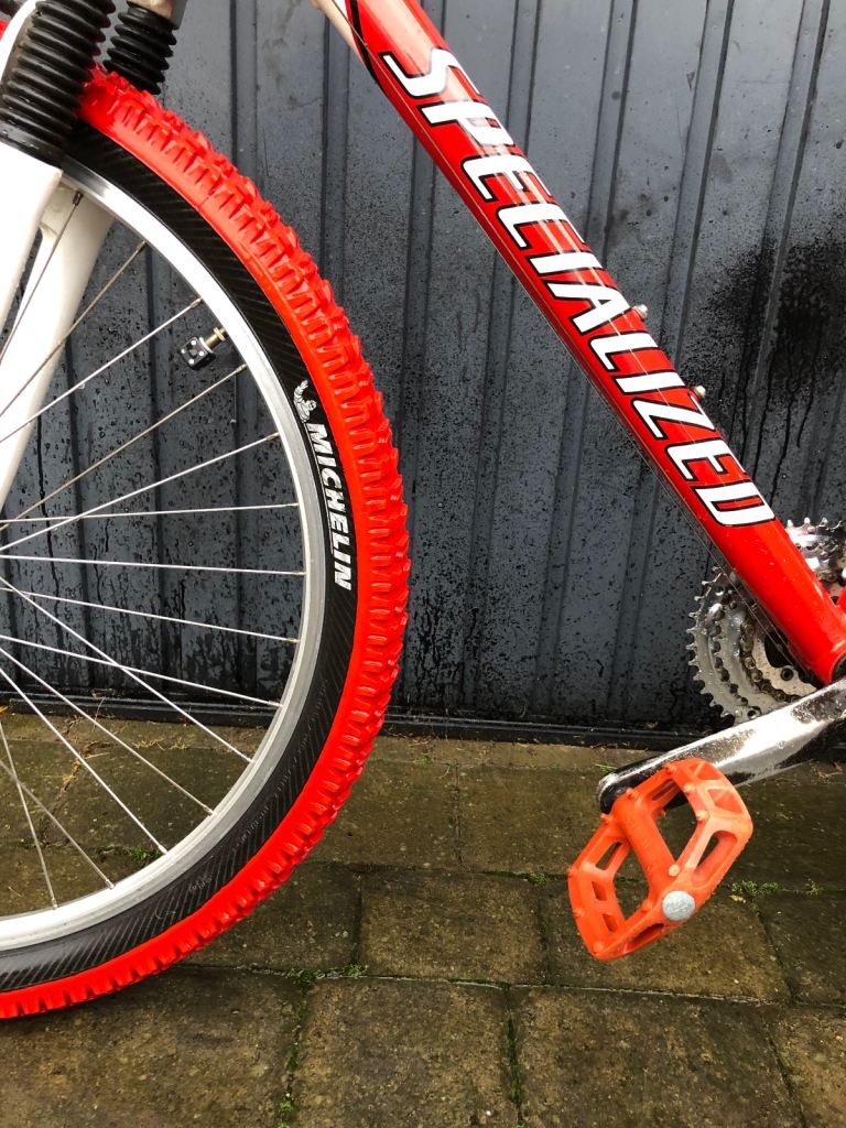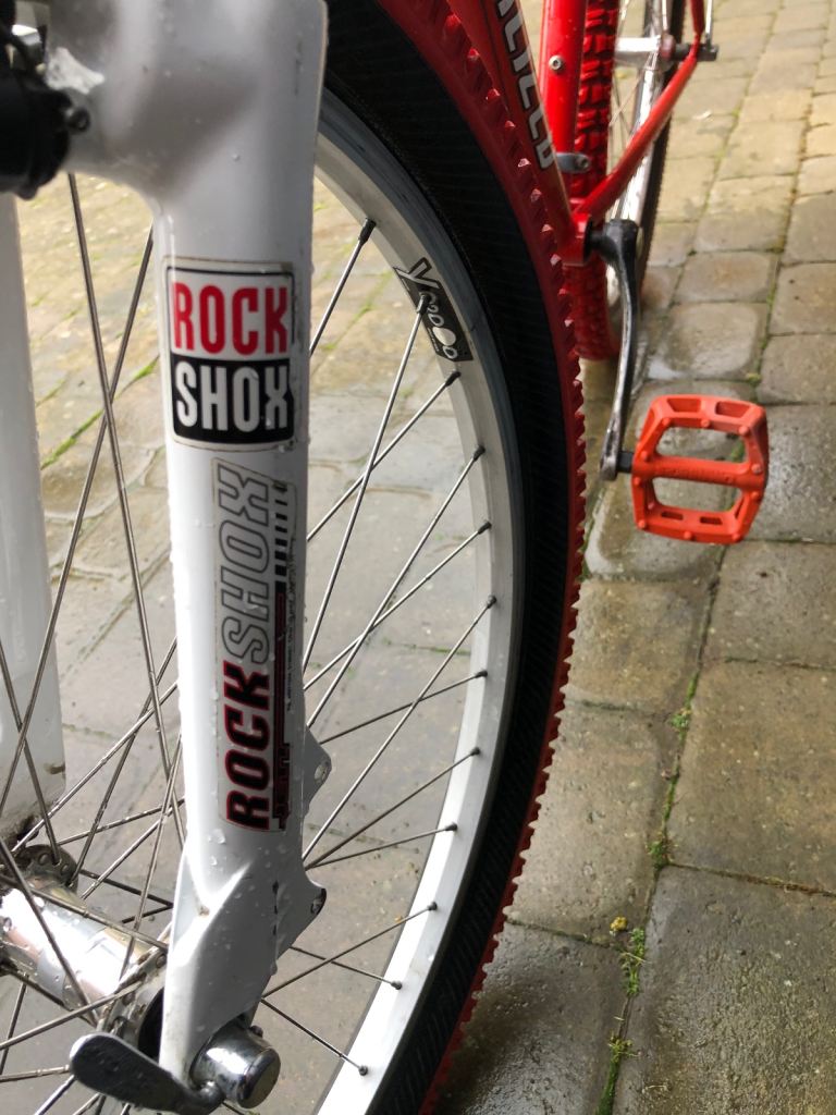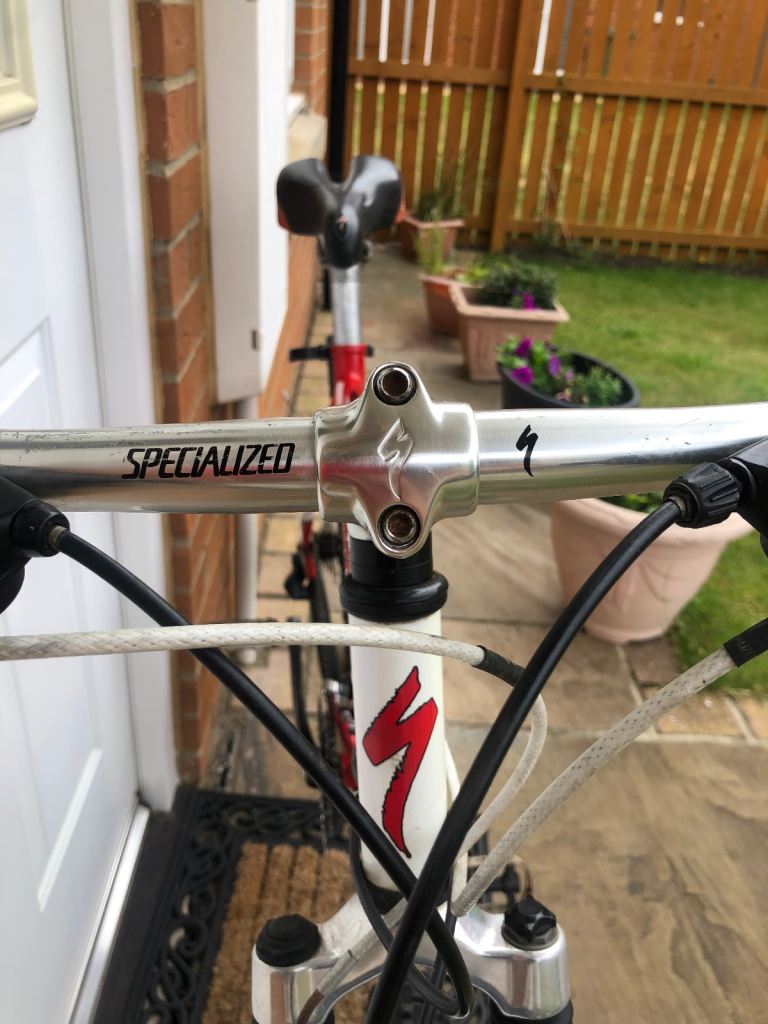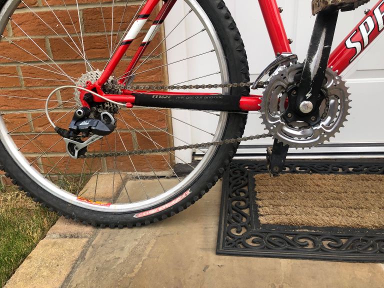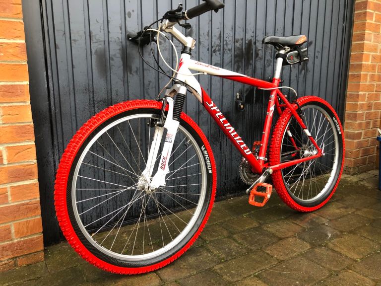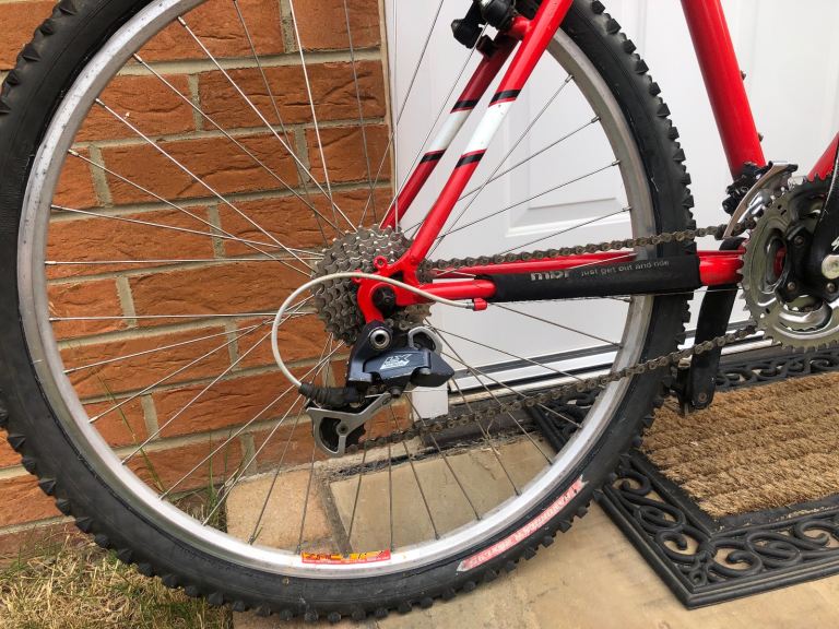 Specialized hardrock , 26” wheels, large 20” frame, shimano lx deore running gear. Rock shox front suspension. Nice chrome/ally original handle bars. 3x7 gear set up so 21 speed, breaks and gears all working as they should, new gear cables just put on with its service. Exceptional retro vintage bike that wil only go up in value. I believe it to be between 1998-2002 age wise. Mint classic. Upgraded Michelin tyres, upgraded dmr red pedals, upgraded grips.