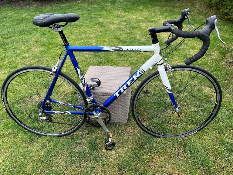 Trek 1000 Men’s Road bike, Aluminium lightweight frame, 16 speed Shimano Sora quick shift gears, Bontrager handlebar & stem / crank shaft and seat post. RaceXrims with Michelin Dynamic Sport tyres and quick release front & rear. Upgraded Gel pad saddle and Mt.Zefal toe clips on the pedals.