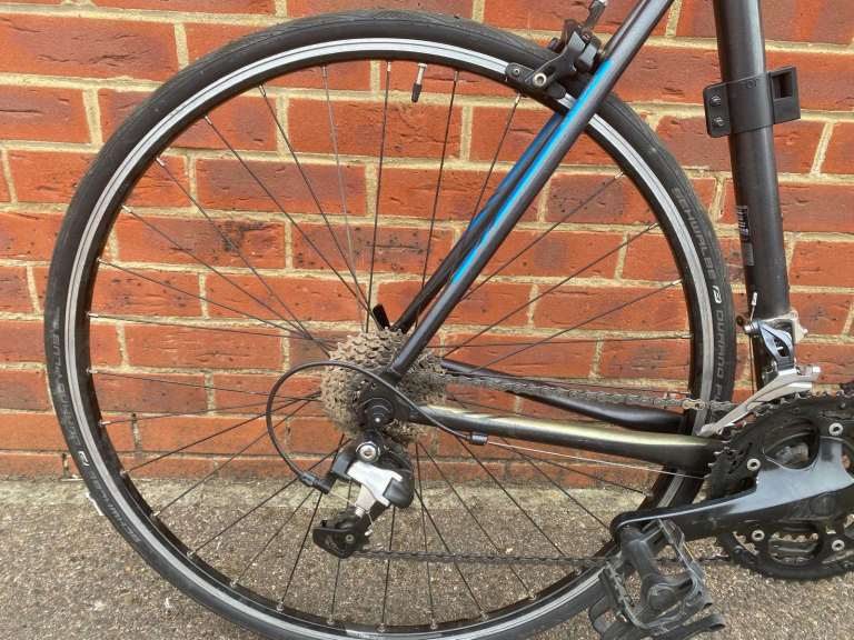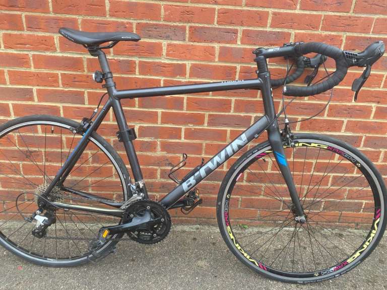The B'Twin Triban 500 road bike is a stylish and high-quality aluminium bike with a sleek black finish. This unisex adult bike is designed for smooth gearing with derailleur gears and rim brakes for efficient stopping power. With 700C wheels and a 57 cm frame size, this road bike is perfect for long rides on open road. Made in France by the reputable brand B'TWIN, this 2011-2020 model S sure to provide a great ride experience Or any cyclist looking for a reliable and performance-driven bike.collection only
