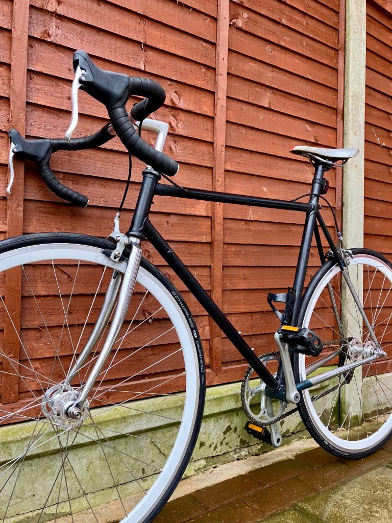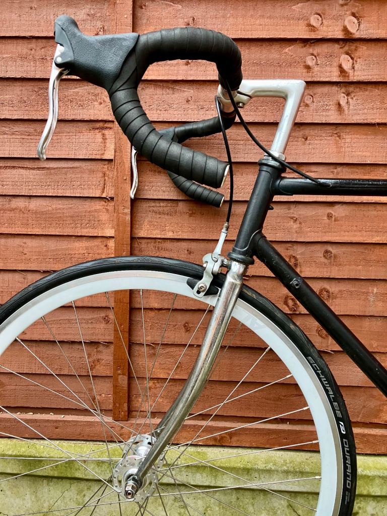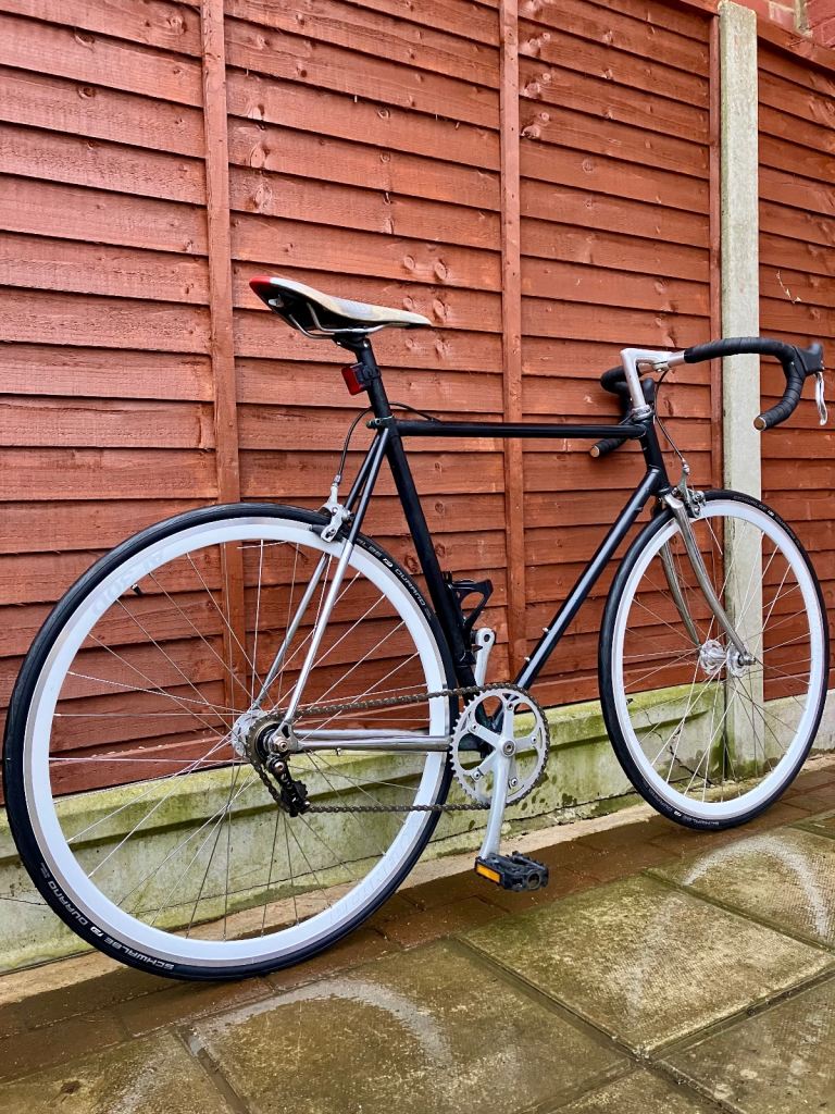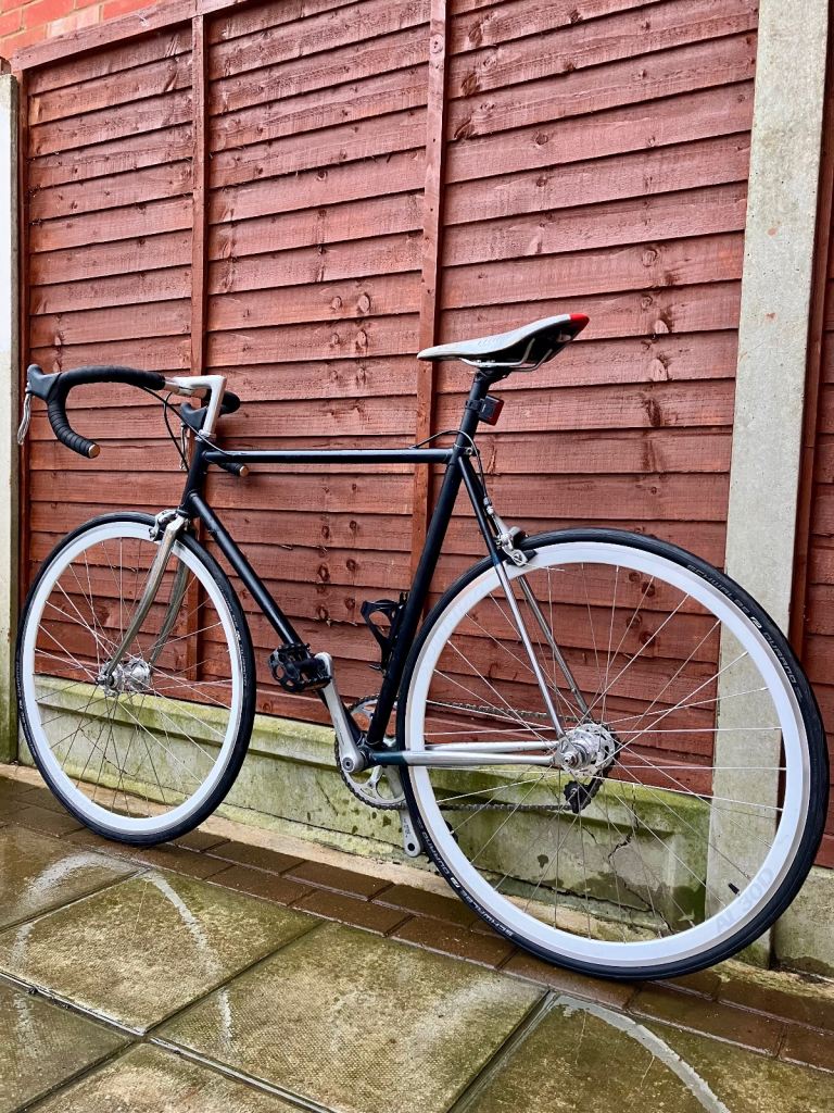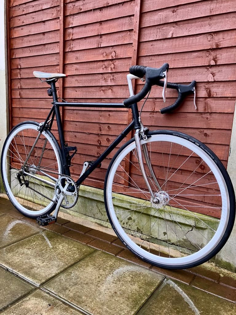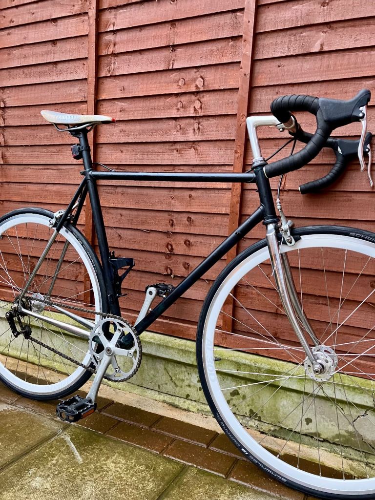 Retrofitted with a brand new Planet X wheelset, tyres, brakes, chain, etc. Beautiful steel frame that’s probably from the 90’s. Ready to ride!