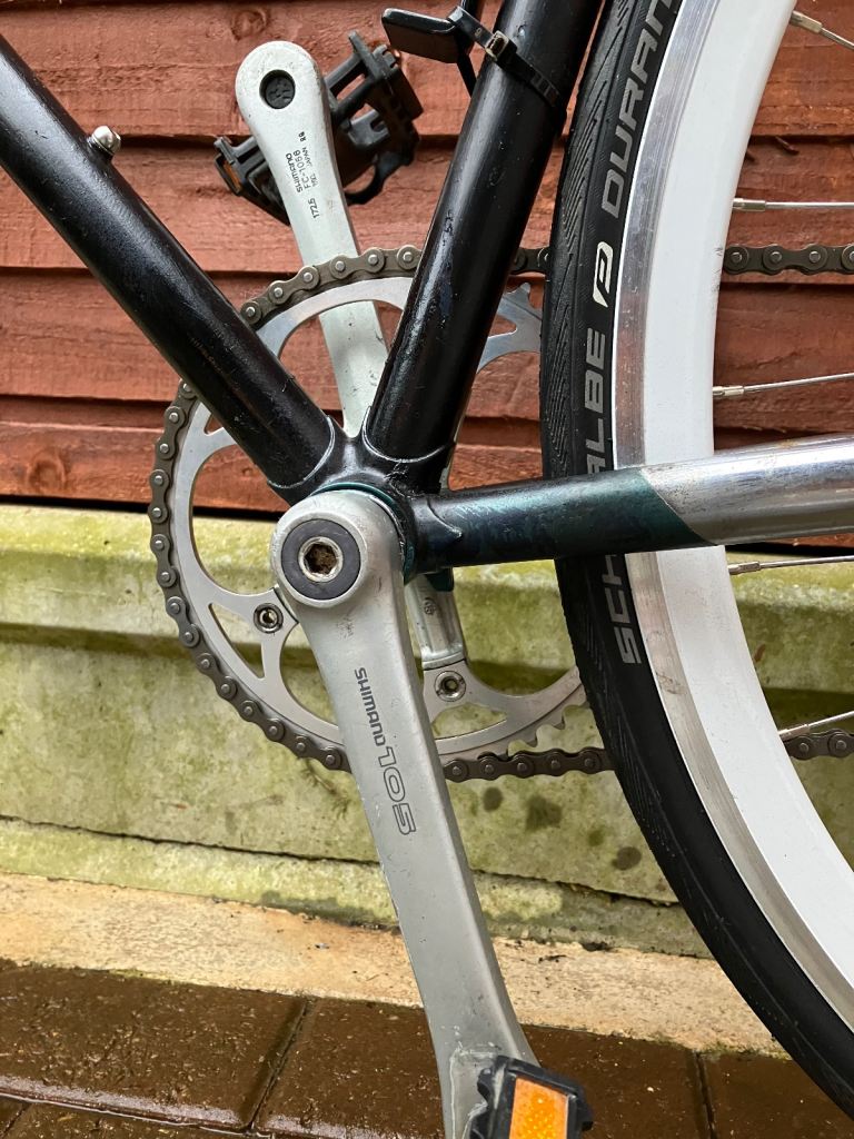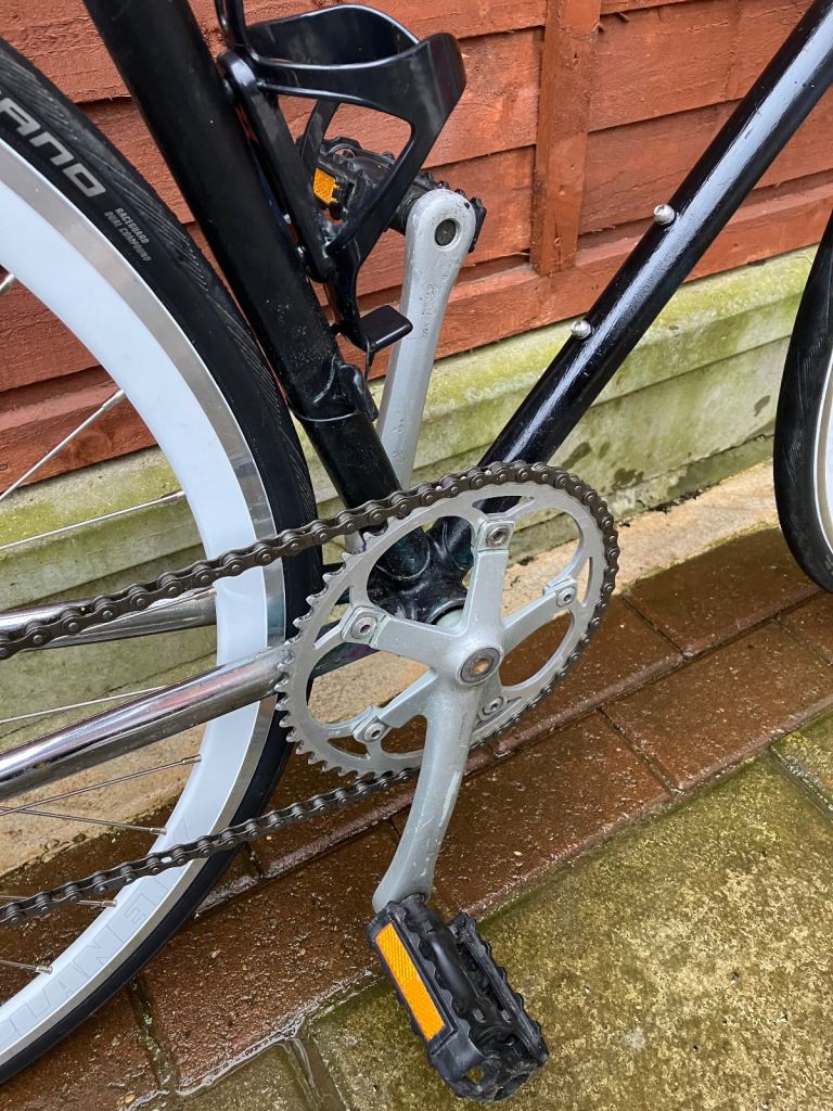- Lightweight lugged steel frame (22” L framesize) and steel forks - usual cosmetic scuffs here & there
