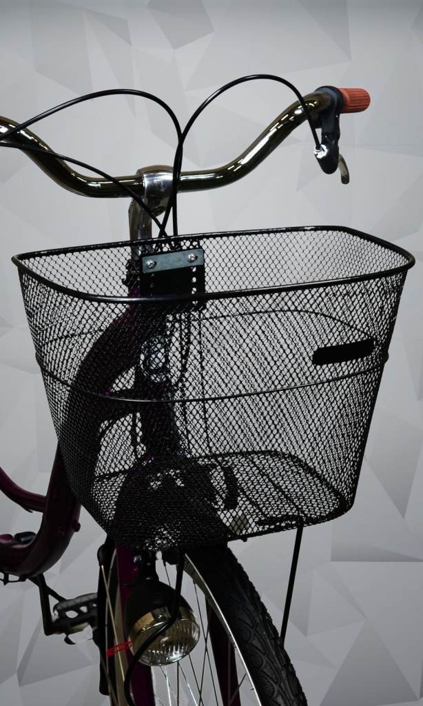 Enjoy every city ride in style with this Women's 26-Inch City Cruiser Bike, perfect for commutes, errands, and leisurely outings. Featuring a step-through frame for easy mounting, a plush brown saddle, and ergonomic handlebars, this bike ensures a comfortable and smooth experience. The Shimano 6/7-speed gear system offers effortless shifting, while the front basket and rear rack add practicality for carrying essentials. With a vibrant purple glossy finish, LED front light, and reflective tires, this bike blends elegance, safety, and functionality. Lightweight yet durable, it’s ready to turn heads and make your rides enjoyable!