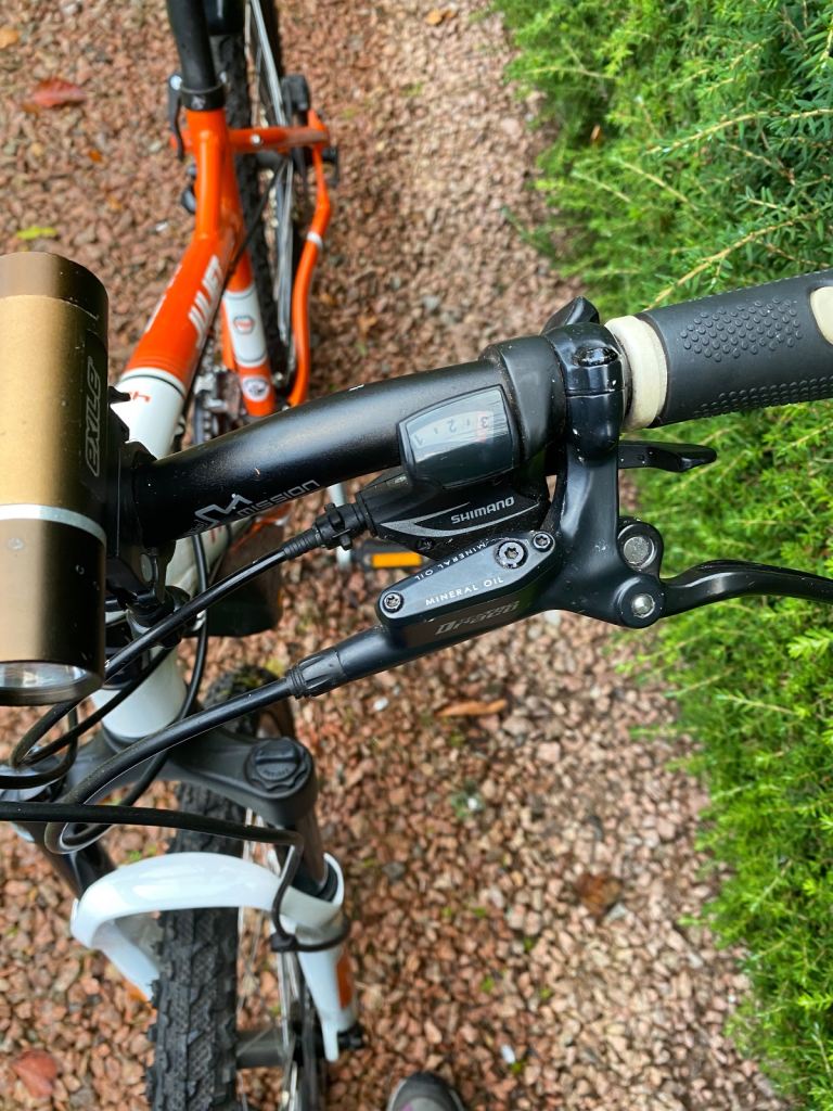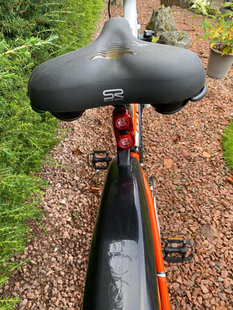 Excellent condition as rarely used. Comes with front and rear lights and has mud guards added which can easily be removed. Also fitted with a gel saddle for comfort, but the original seat comes with it for choice.