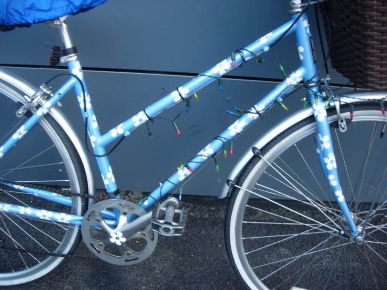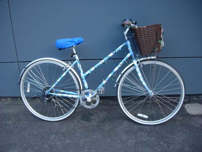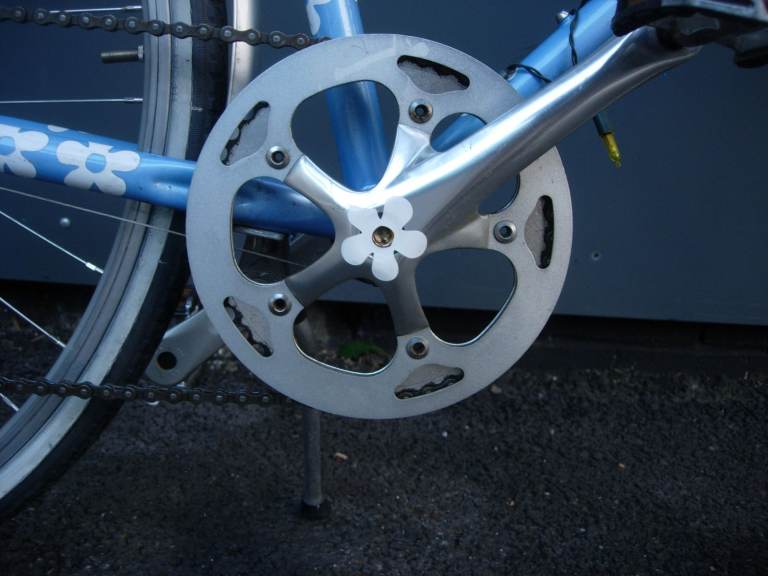 The Previous owner Personalized this Bike with Flower Stickers, Flashing Fairy Lights, Owl Bell and a Fairy doll with Plastic Flower!! Bike Thieves Generally Avoid Bikes so Personalized. They can’t be Bothered Stripping all the Bits Off!
