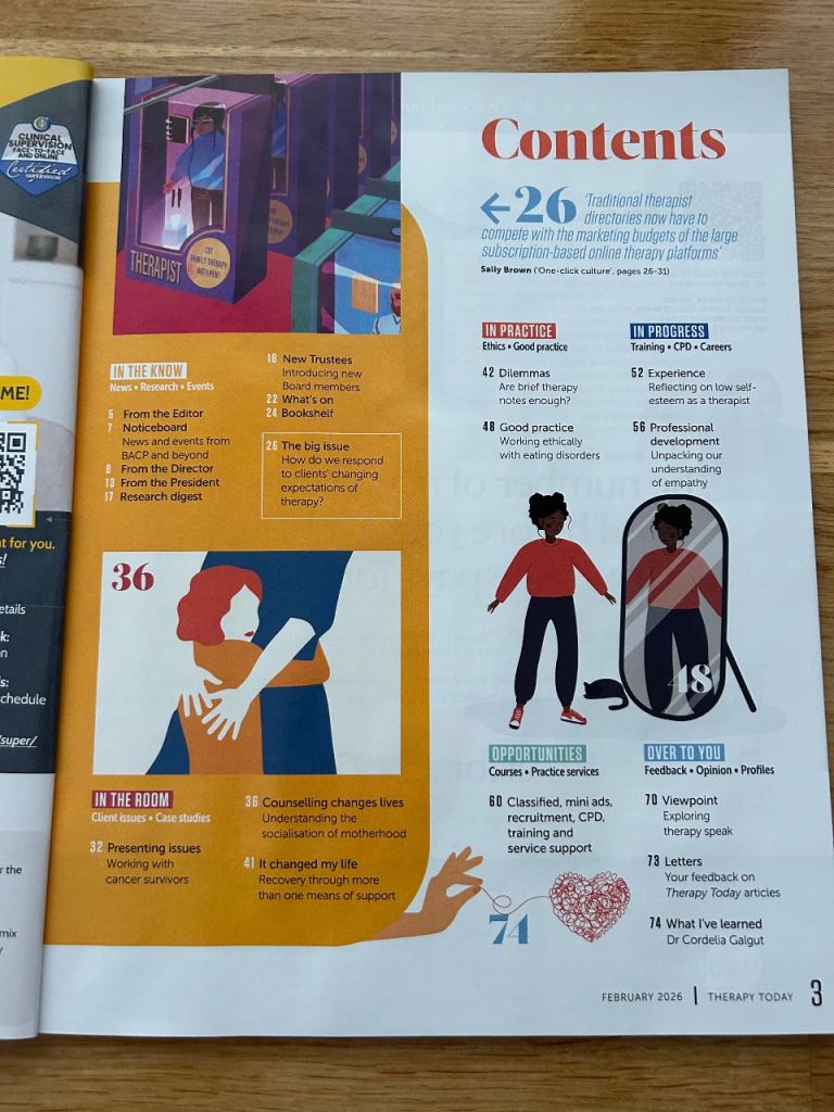 I am selling a full run of the BACP monthly magazine Therapy Today from May’23 to Mar’26 if anybody would like these.