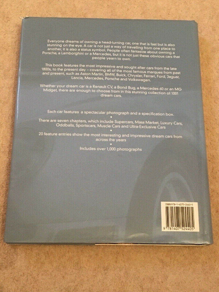 BOOK - 1001 Dream Cars by Parragon (Hardback, 2008)