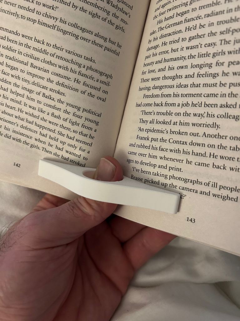 The Book Holder Thumb Page Holder is a convenient accessory designed for one-handed reading. Made from durable plastic in an oval shape, this thumb holder is lightweight and easy to use. With dimensions of 95mm in length and 7mm in width, it is the perfect size to assist in smoothly turning the pages of your book. Manufactured in the United Kingdom, this book study accessory is a practical and essential tool for avid readers.