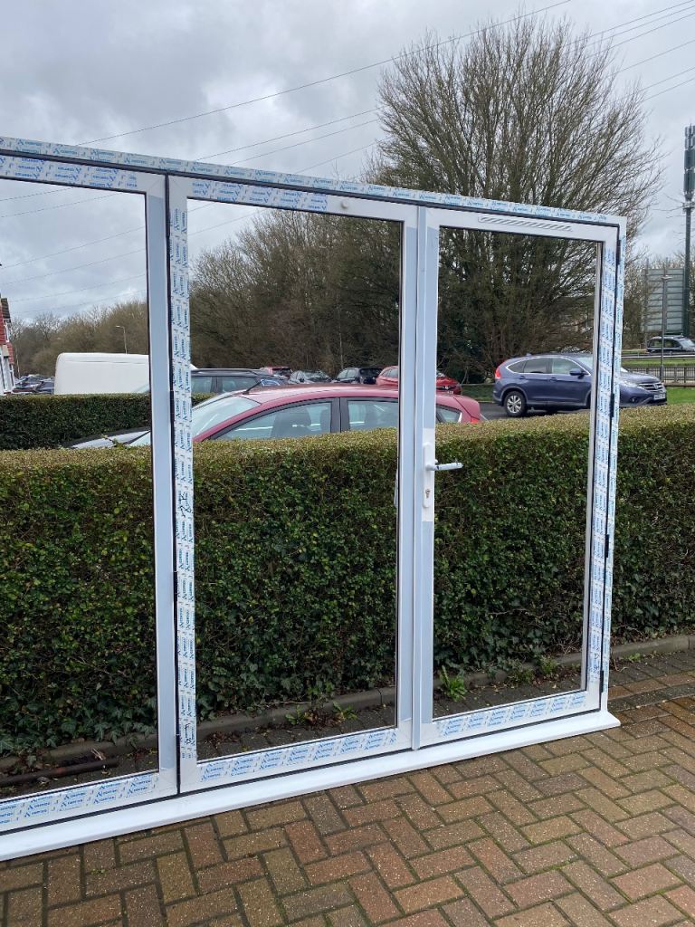 New white Aluminium bifolding doors for sale. wrong colour orderd. They Cost £4000 each when orderd.