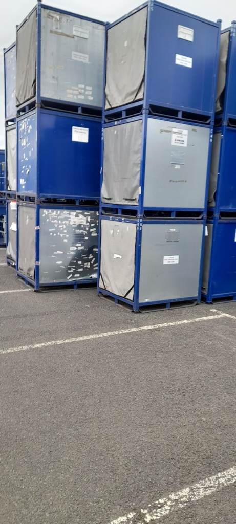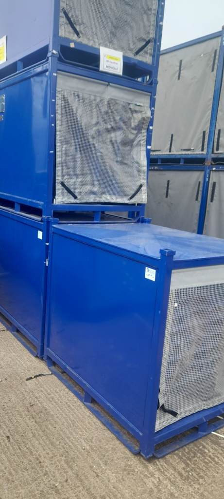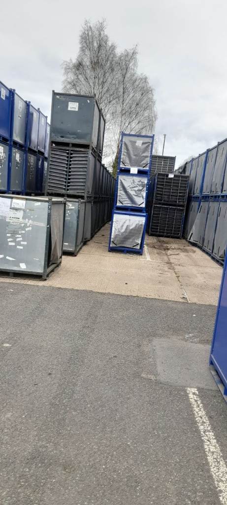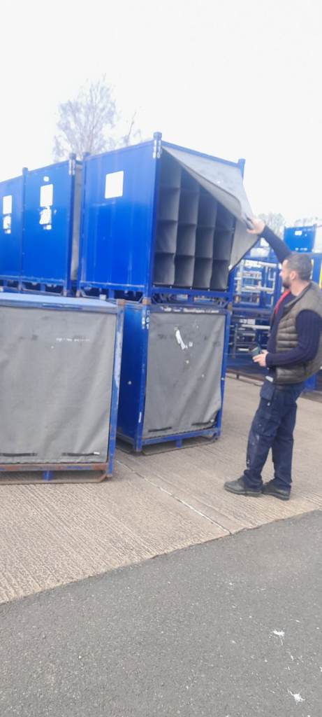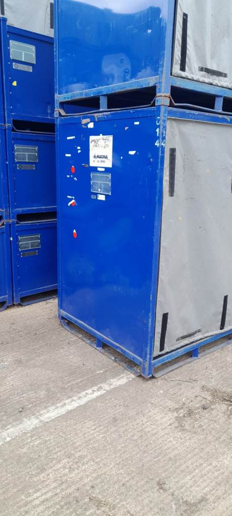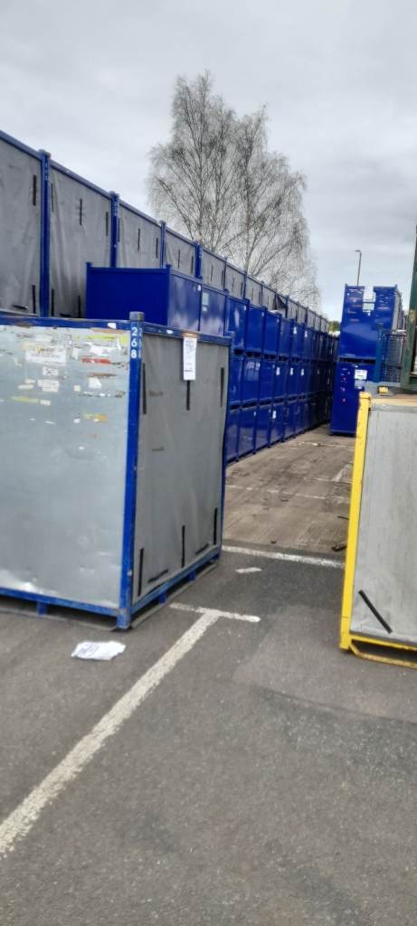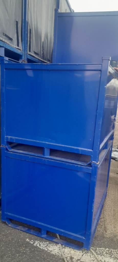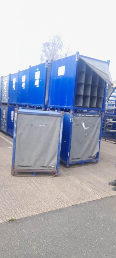 3 sided stillages , with plastic velcro flap, comes with internal part dividers, which are removable.