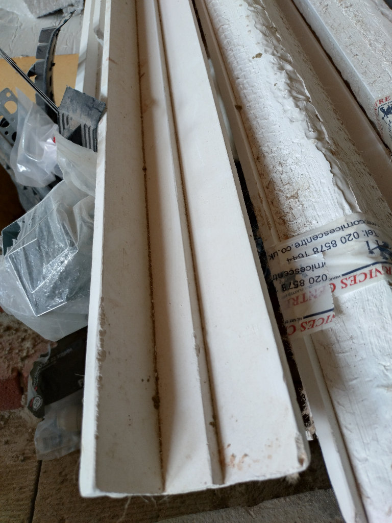 Selling these surplus Plaster Coving Lengths. Have around 8 Lengths and a few off-cuts. Each piece is around £40. I think the design is called PC617 Small Long Steps and is sold by -Cornices Centre-co-uk. I will add some measurements.
