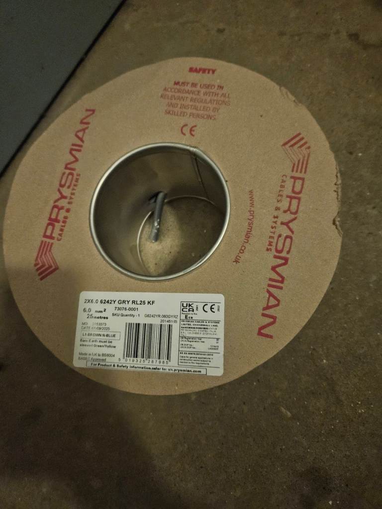 6mm twin and earth cable (bought a 25m roll from screwfix on 26/10) grey, approx 12m remains - £20 (rrp £26.99 for 10M)