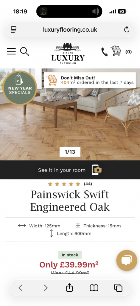 I bought the flooring on LuxuryFlooring and it’s the Painswick Swift Engineered Oak