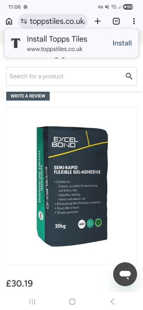 Excel-Bond semi rapid flexi-gel tile adhesive, White 4 x 20kg bags price for all.