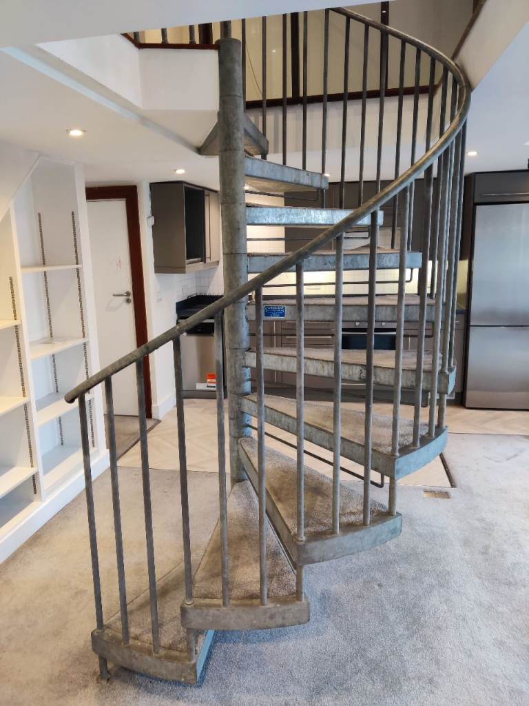 Large Galvanised Spiral Staircase, 2 metres in Diameter, 2400mm high.