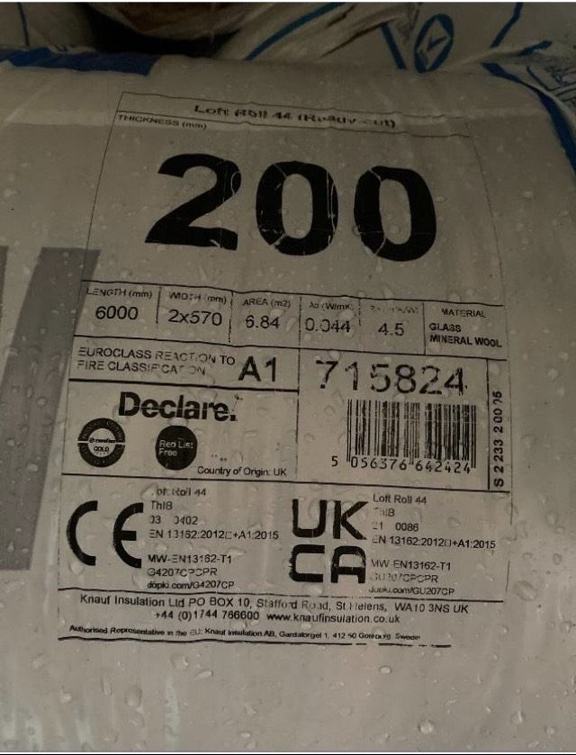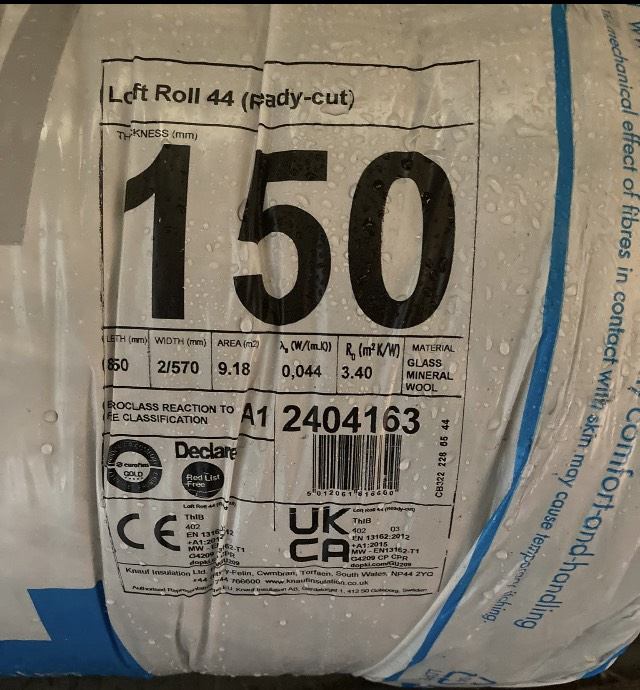 Knauf loft Insulation Rolls available in 150 and 200mm thickness.