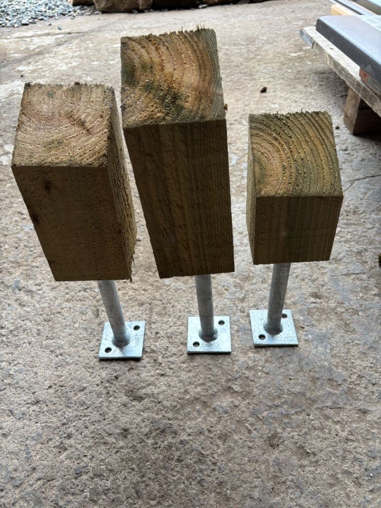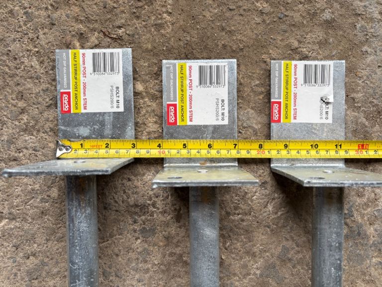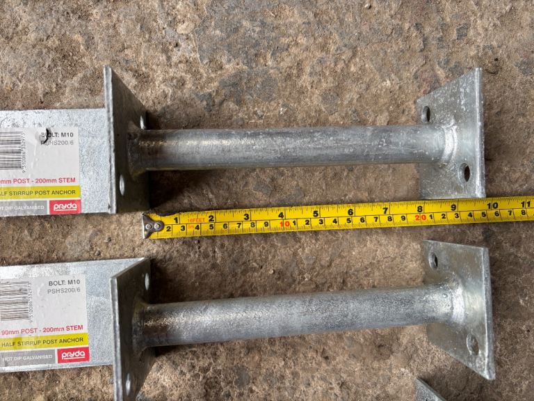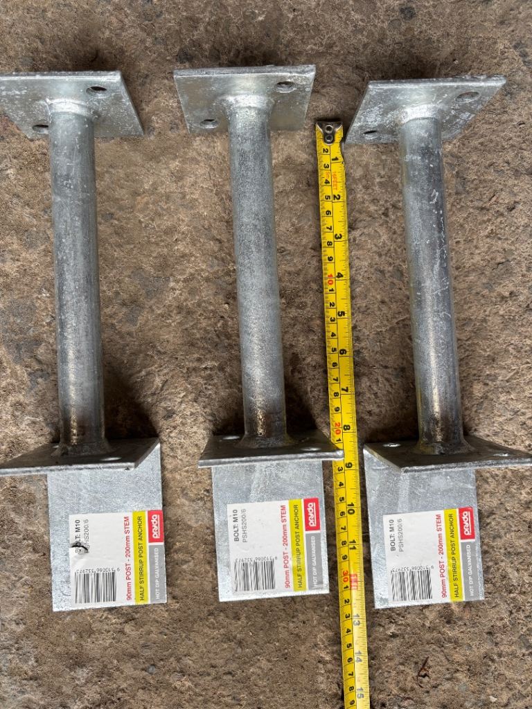 New Galvanised Half Post 200mm Stem Anchors - Set of 3